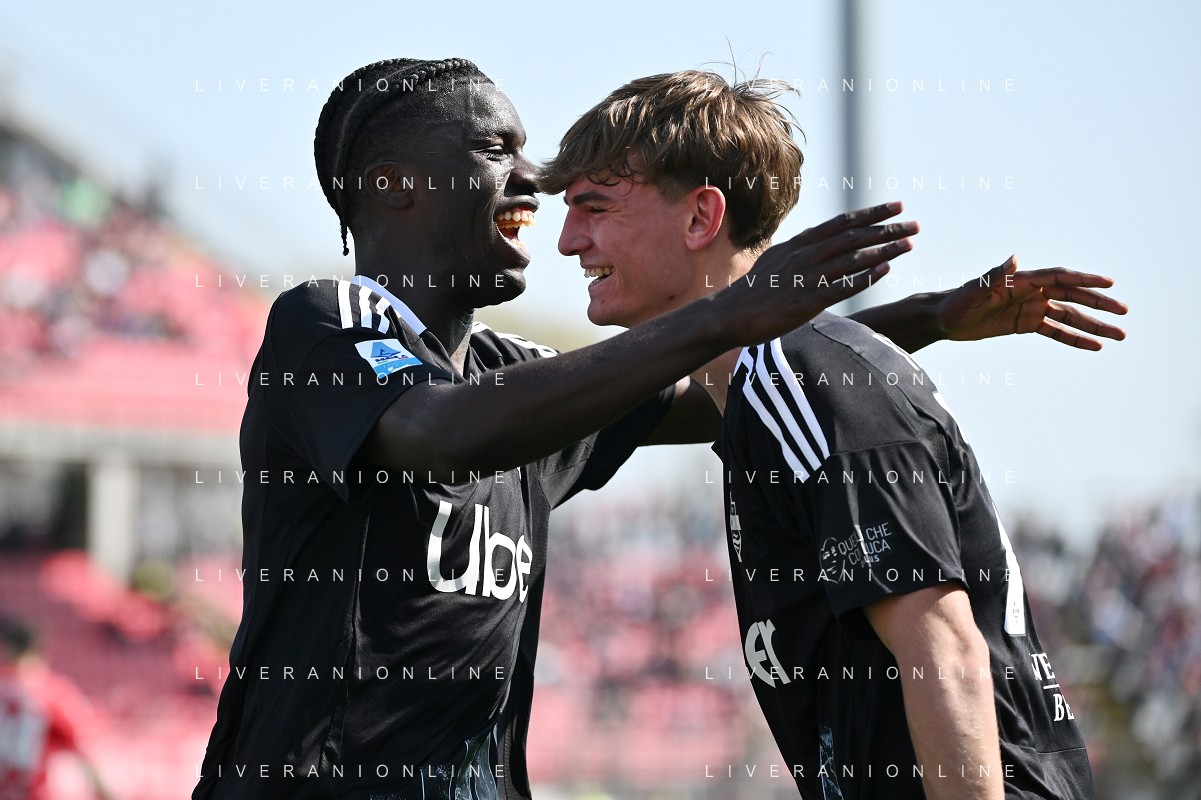 TVRG Monza vs Como nella foto Assane Diao (Como) e Nicolas Paz Martinez (Como) esultanza dopo il gol del 2 a 1 Monza 05-04-2025 U-Power Stadium Campionato Serie A Enilive - 31a giornata foto Roberto Garavaglia/Agenzia Aldo Liverani sas