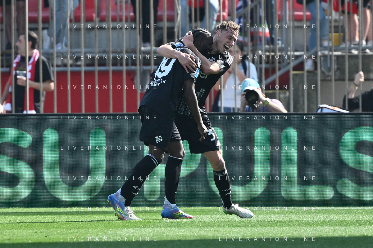 TVRG Monza vs Como nella foto Jonathan Ikone’ (Como) e Mergim Vojvoda (Como) esultanza dopo il gol del 3 a 1 Monza 05-04-2025 U-Power Stadium Campionato Serie A Enilive - 31a giornata foto Roberto Garavaglia/Agenzia Aldo Liverani sas