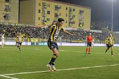 05 04 2025 - Castellammare di Stabia. Stadio Romeo Menti. Campionato Serie B. Juve Stabia-Salernitana Nella foto esultanza di niccolo fortini dopo il gol dell'1-0 Foto Giuseppe Cuozzo/Agenzia Liverani- AGENZIA ALDO LIVERANI SAS