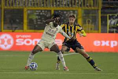 05 04 2025 - Castellammare di Stabia. Stadio Romeo Menti. Campionato Serie B. Juve Stabia-Salernitana Nella foto franco tongya, marco bellich Foto Giuseppe Cuozzo/Agenzia Liverani- AGENZIA ALDO LIVERANI SAS