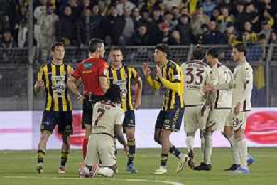 05 04 2025 - Castellammare di Stabia. Stadio Romeo Menti. Campionato Serie B. Juve Stabia-Salernitana Nella foto espulsione alessandro louati Foto Giuseppe Cuozzo/Agenzia Liverani- AGENZIA ALDO LIVERANI SAS