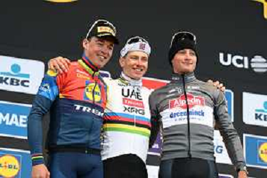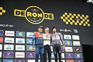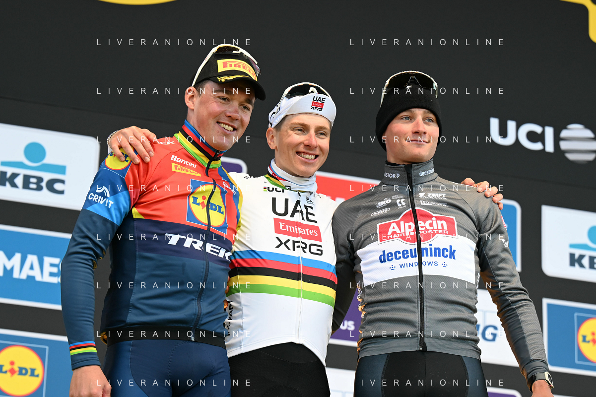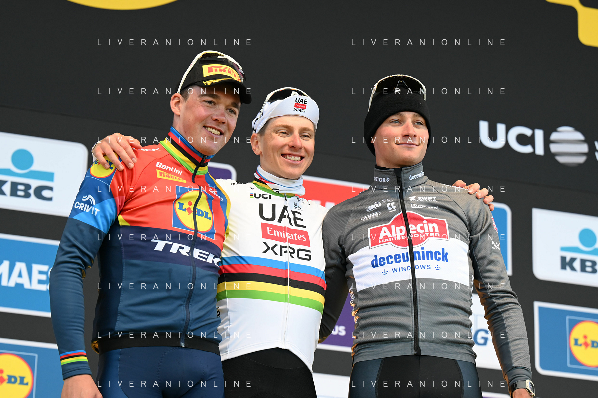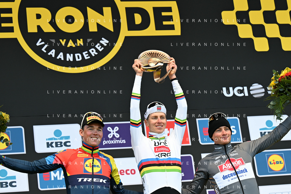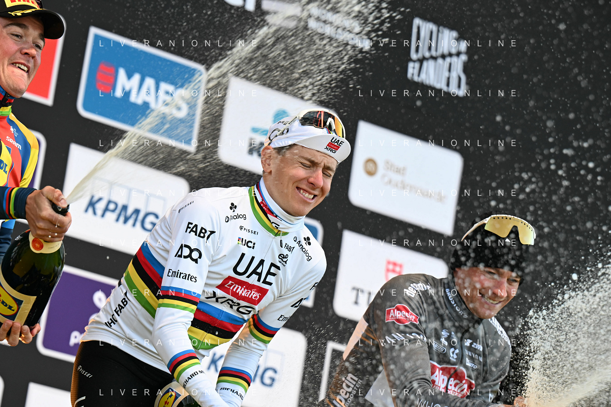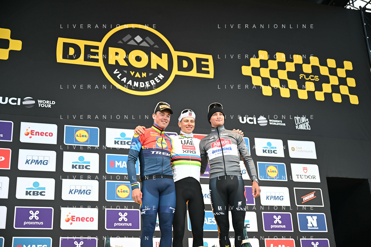 06-04-2025 Tour Des Flandres; 2025, Uae Team Emirates - Xrg; 2025, Lidl - Trek; 2025, Alpecin - Deceuninck; Pogacar, Tadej; Pedersen, Mads; Van Der Poel, Mathieu; Oudenaarde; ©SIROTTI - AGENZIA ALDO LIVERANI SAS