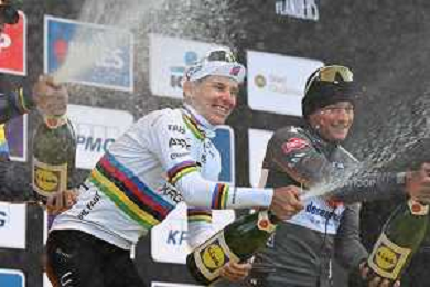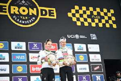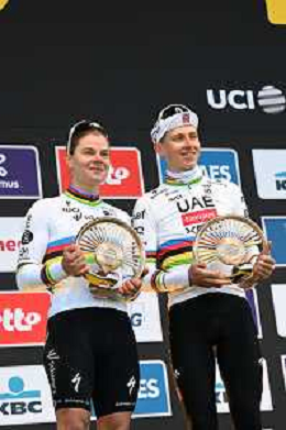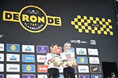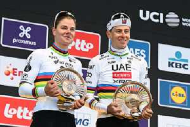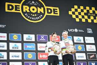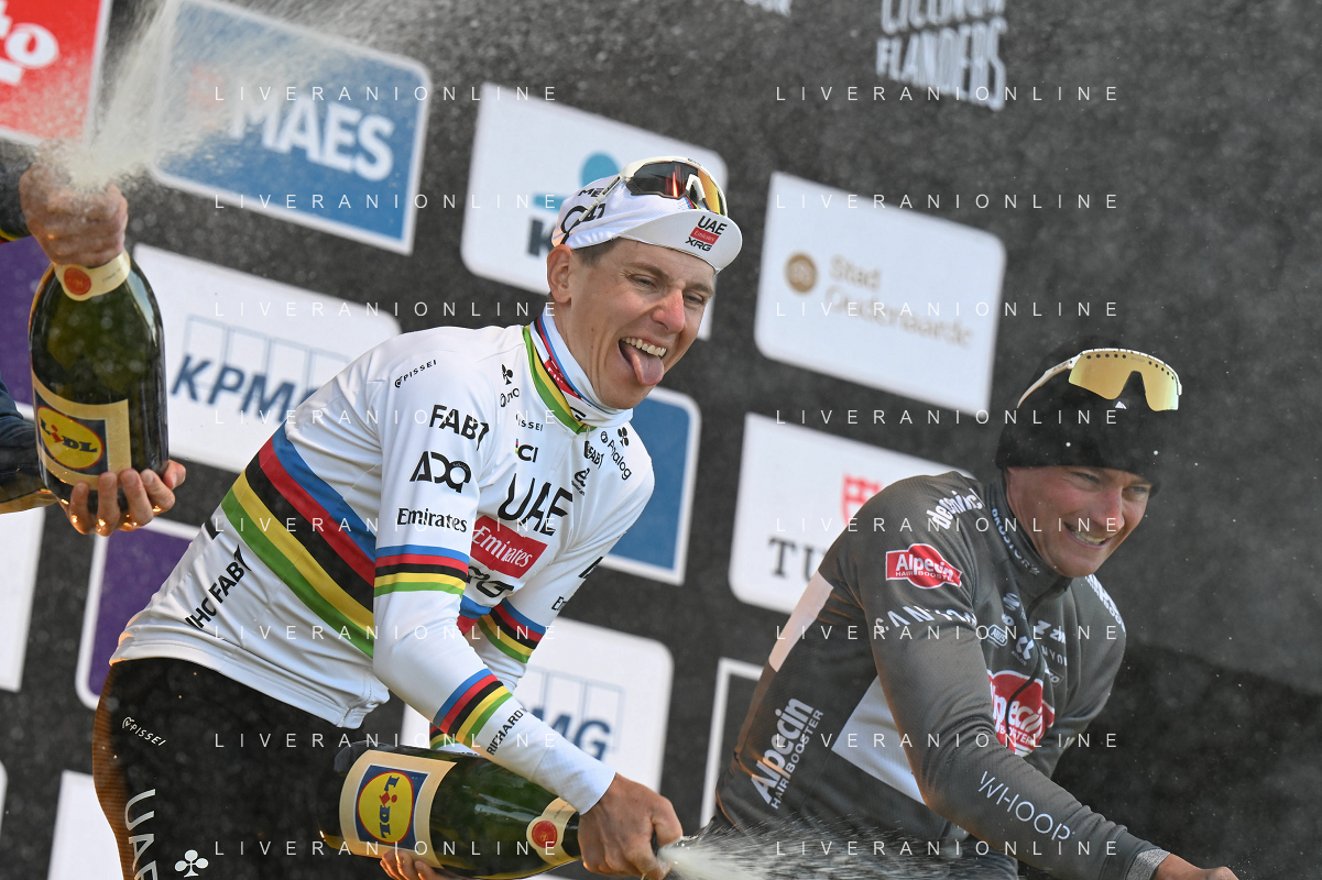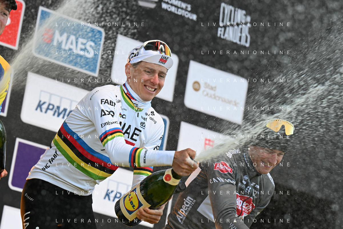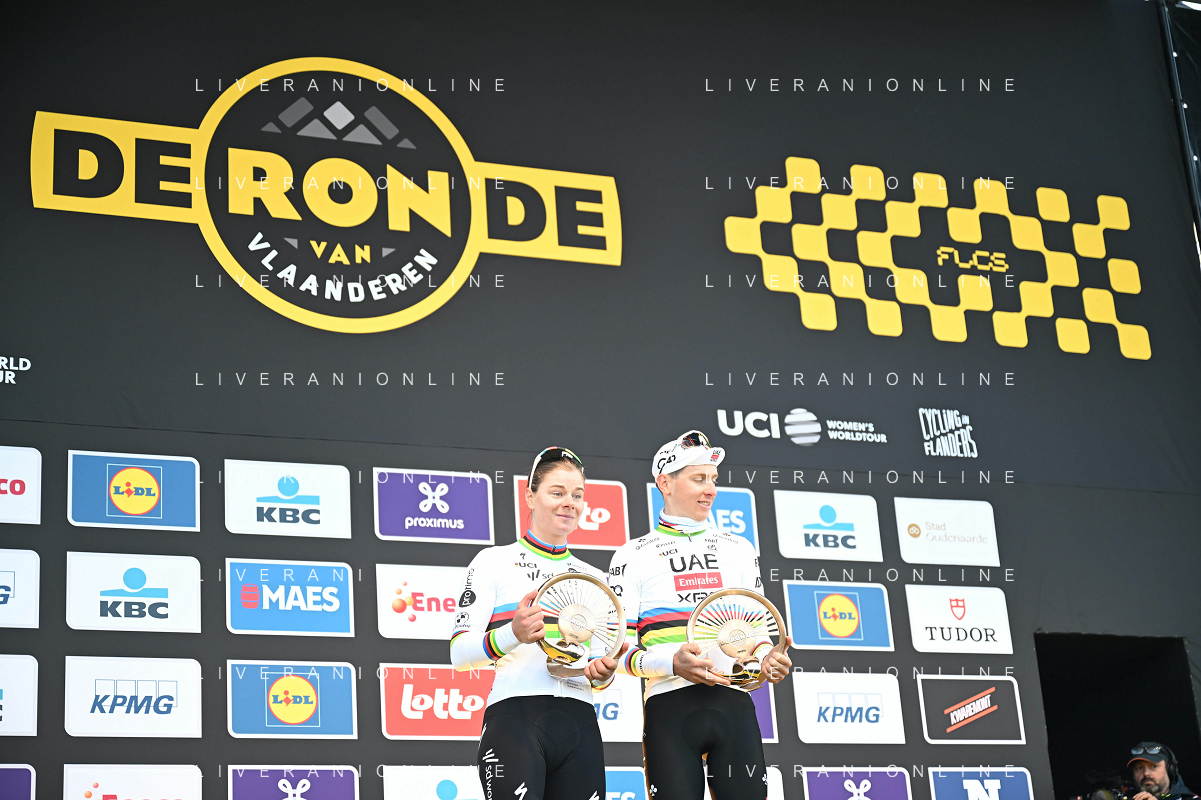 06-04-2025 Tour Des Flandres; 2025, Uae Team Emirates - Xrg; 2025, Sd Worx - Protime; Pogacar, Tadej; Kopecky, Lotte; Oudenaarde; ©SIROTTI - AGENZIA ALDO LIVERANI SAS