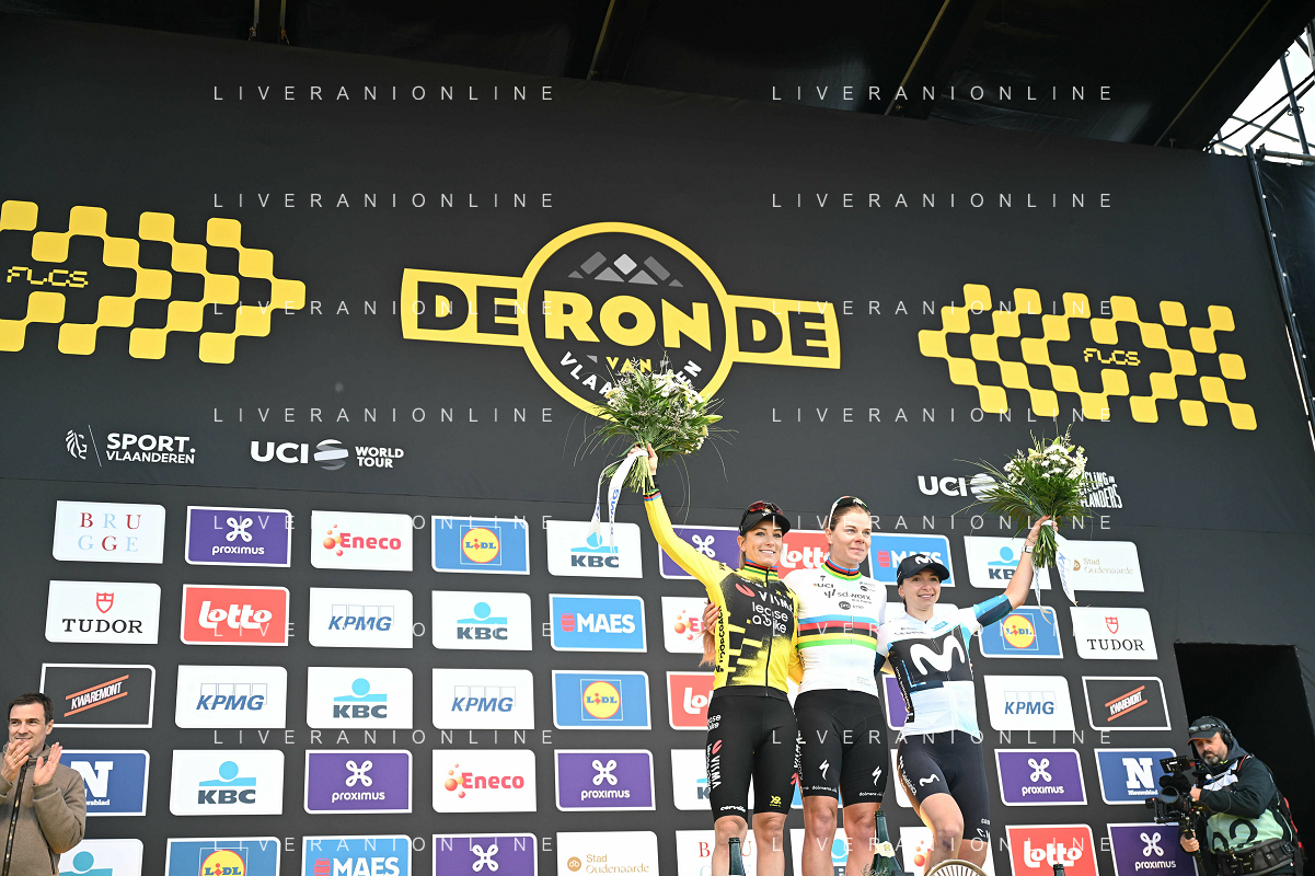 06-04-2025 Tour Des Flandres Women; 2025, Sd Worx - Protime; 2025, Visma - Lease A Bike Women; 2025, Movistar Women; Kopecky, Lotte; Ferrand Prevot, Pauline; Lippert, Liane; Oudenaarde; ©SIROTTI - AGENZIA ALDO LIVERANI SAS