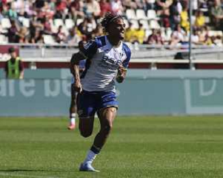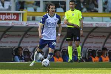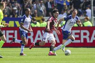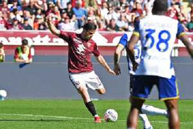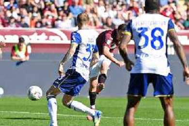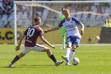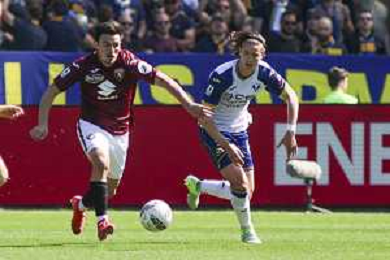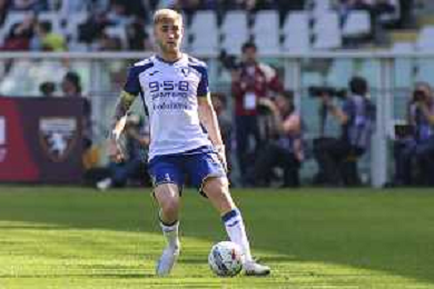 Antoine Bernede of Hellas Verona FC play the ball during Torino FC vs Hellas Verona FC, 31° Serie A Enilive 2024-25 game at Olimpic stadium - Grande Torino in Torino (TO), Italy, on April 06, 2025. (Photo by Davide Casentini)- AGENZIA ALDO LIVERANI SAS