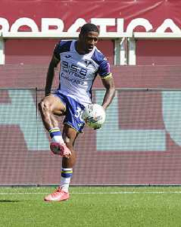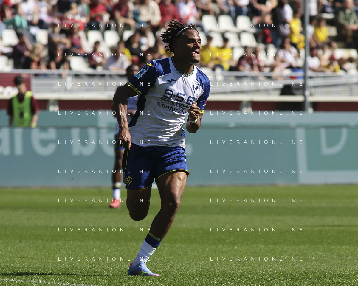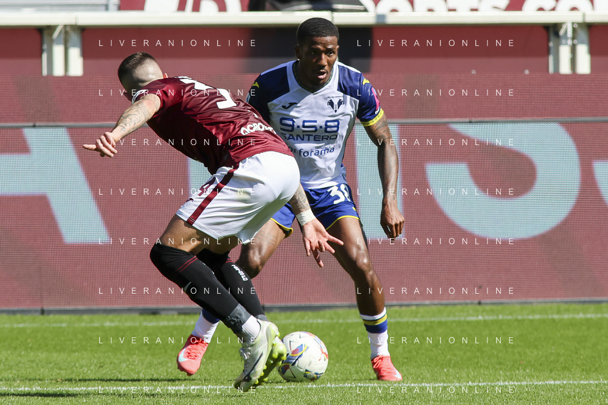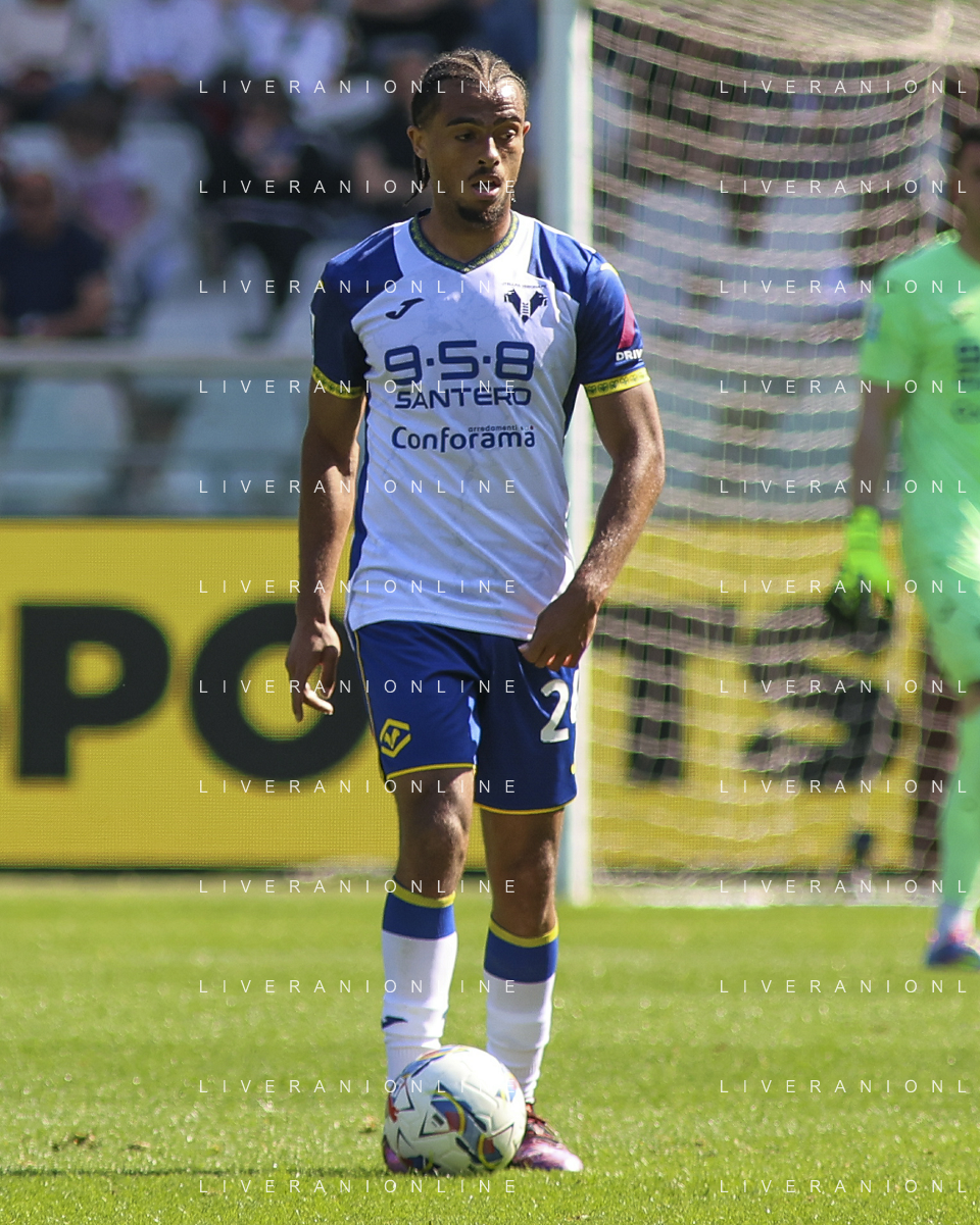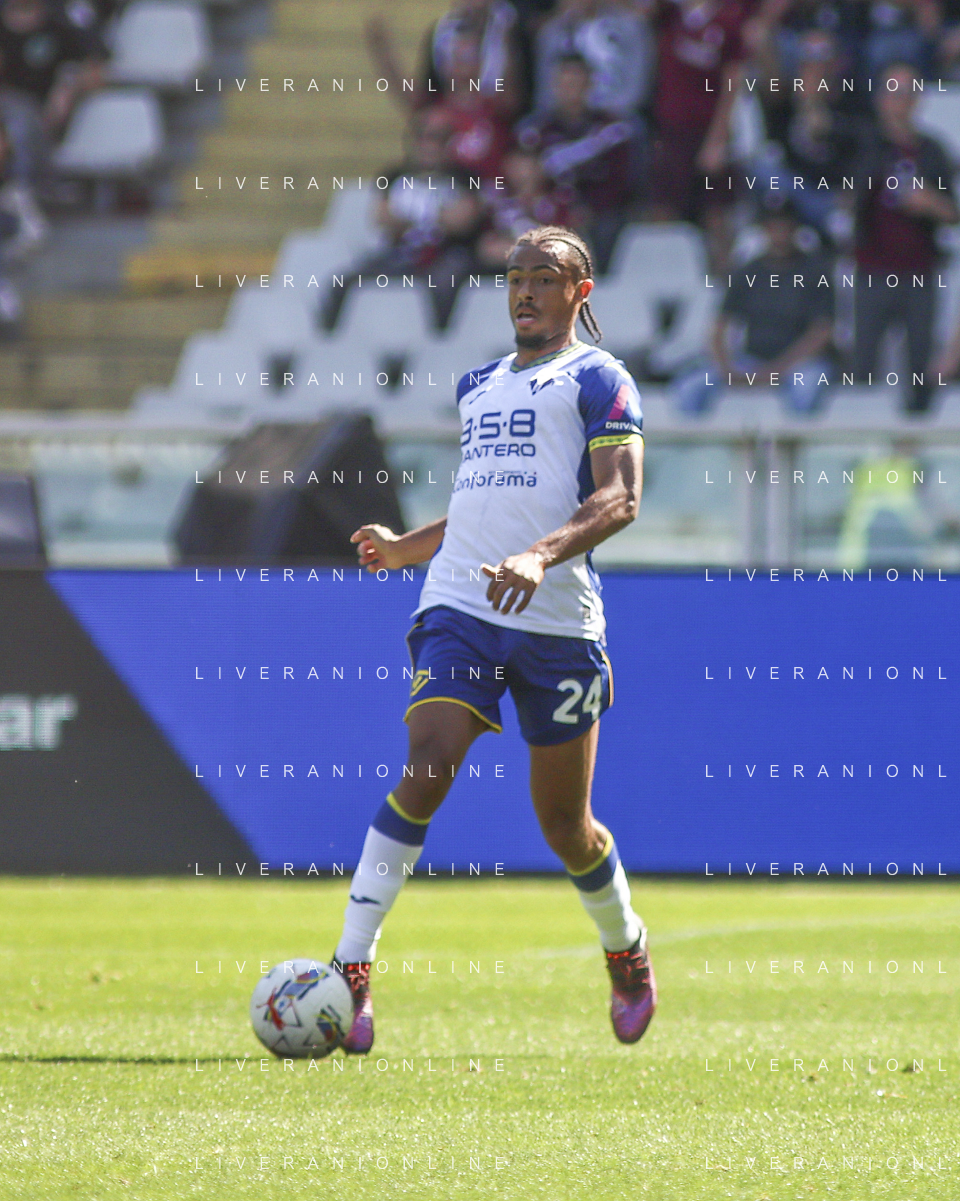 Jackson Tchatchoua of Hellas Verona FC during Torino FC vs Hellas Verona FC, 31° Serie A Enilive 2024-25 game at Olimpic stadium - Grande Torino in Torino (TO), Italy, on April 06, 2025. (Photo by Davide Casentini)- AGENZIA ALDO LIVERANI SAS