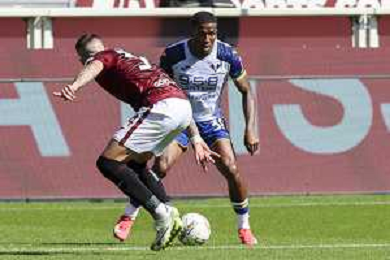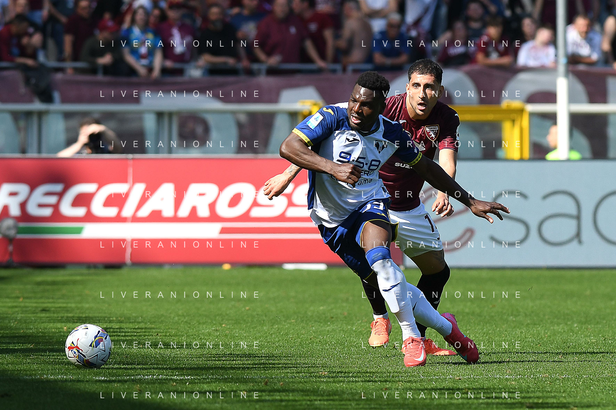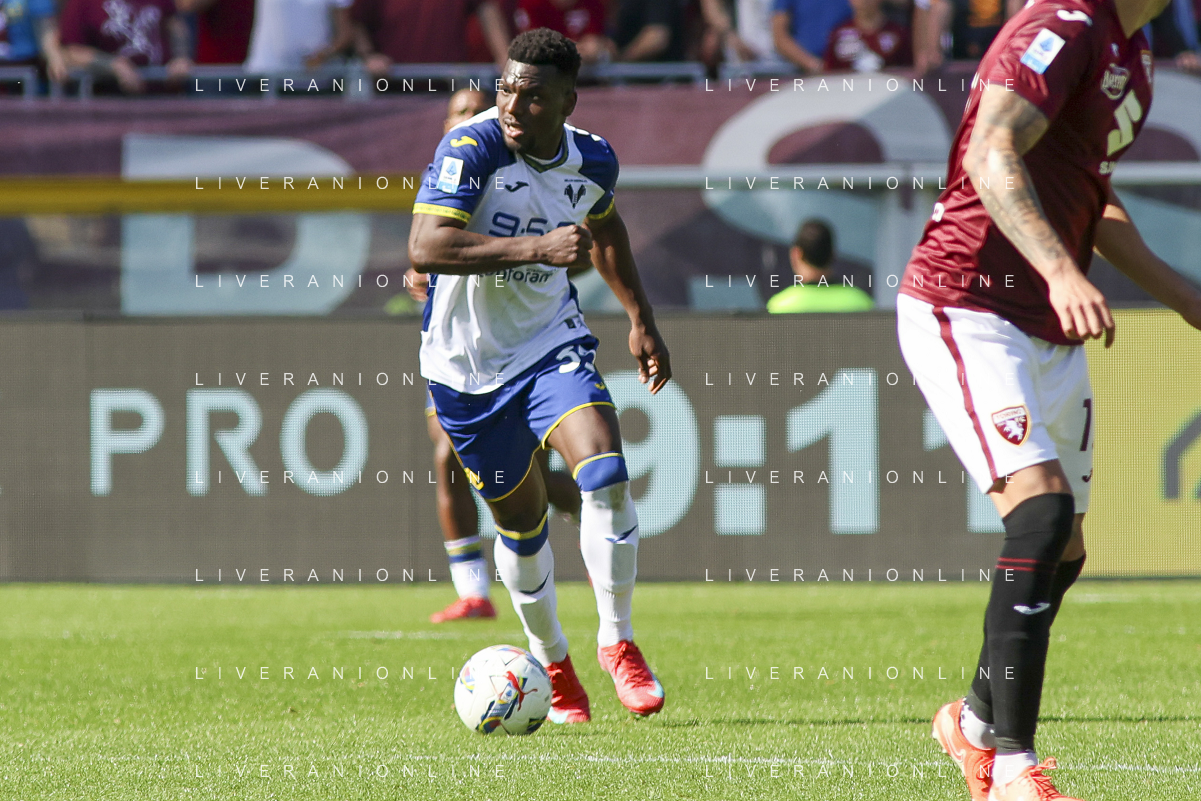 Amin Sarr of Hellas Verona FC during Torino FC vs Hellas Verona FC, 31° Serie A Enilive 2024-25 game at Olimpic stadium - Grande Torino in Torino (TO), Italy, on April 06, 2025. (Photo by Davide Casentini)- AGENZIA ALDO LIVERANI SAS