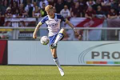 Nicolas Valentini of Hellas Verona FC play the ball during Torino FC vs Hellas Verona FC, 31° Serie A Enilive 2024-25 game at Olimpic stadium - Grande Torino in Torino (TO), Italy, on April 06, 2025. (Photo by Davide Casentini)- AGENZIA ALDO LIVERANI SAS