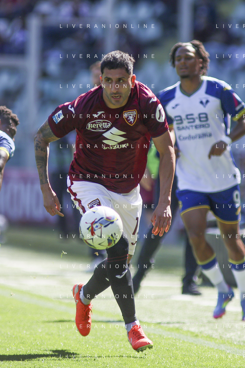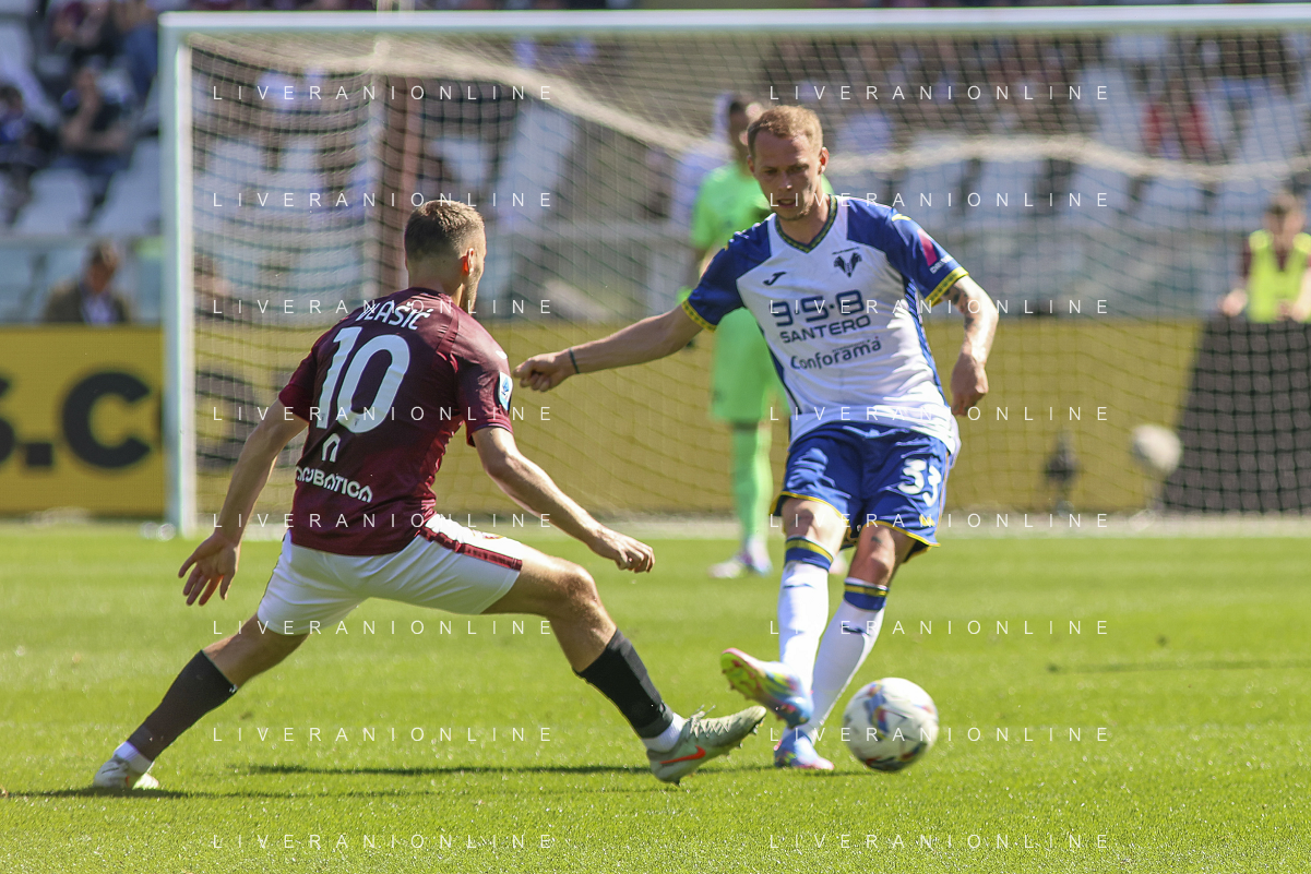 Domagoj Bradaric of Hellas Verona FC play the ball during Torino FC vs Hellas Verona FC, 31° Serie A Enilive 2024-25 game at Olimpic stadium - Grande Torino in Torino (TO), Italy, on April 06, 2025. (Photo by Davide Casentini)- AGENZIA ALDO LIVERANI SAS