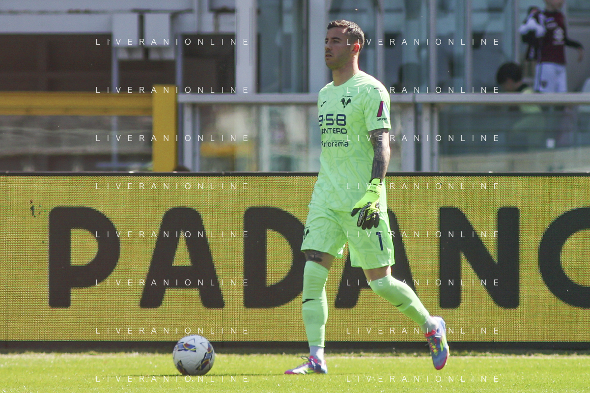 Lorenzo Montipo’ of Hellas Verona FC play the ball during Torino FC vs Hellas Verona FC, 31° Serie A Enilive 2024-25 game at Olimpic stadium - Grande Torino in Torino (TO), Italy, on April 06, 2025. (Photo by Davide Casentini)- AGENZIA ALDO LIVERANI SAS