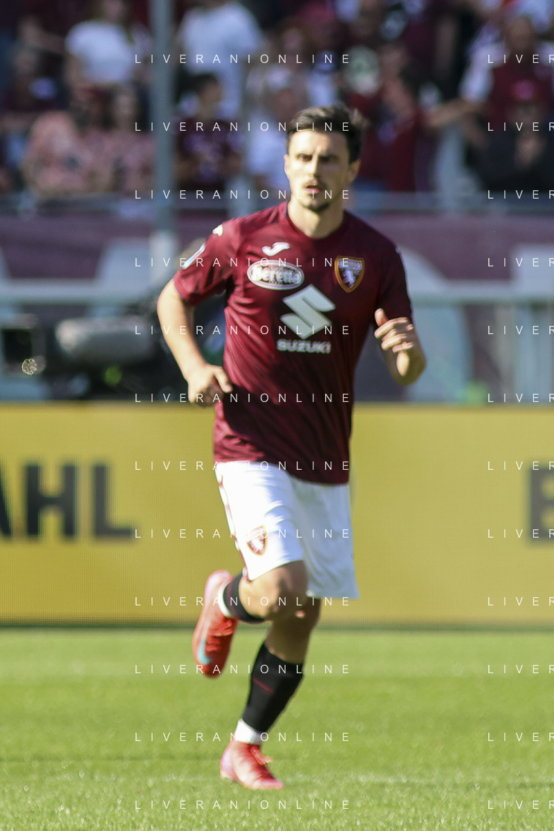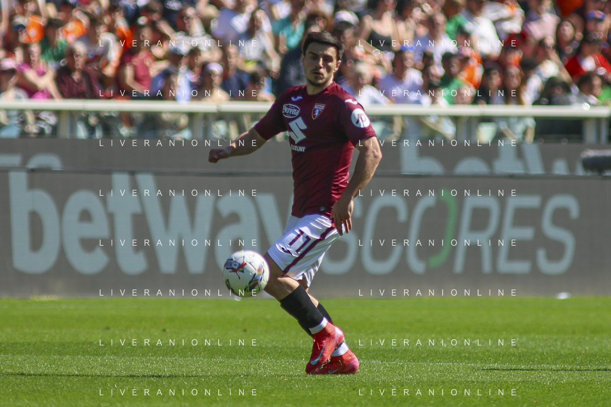 Gvidas Gineitis of Torino FC play the ball during Torino FC vs Hellas Verona FC, 31° Serie A Enilive 2024-25 game at Olimpic stadium - Grande Torino in Torino (TO), Italy, on April 06, 2025. (Photo by Davide Casentini)- AGENZIA ALDO LIVERANI SAS