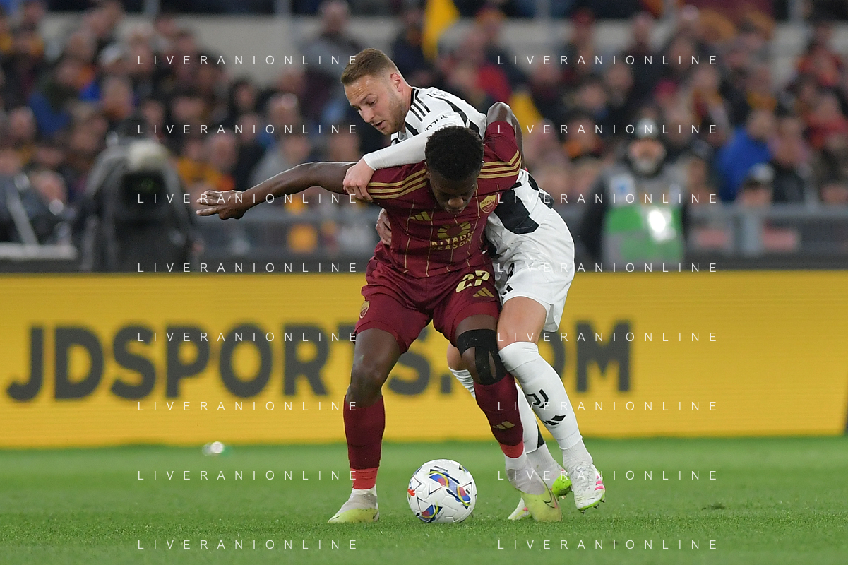 Roma vs Juventus Campionato Serie A Enilive - 31 Giornata Stadio Olimpico - Roma 06-04-2025 nella foto Lloyd Kelly foto federico gaetano-ag aldo liverani sas