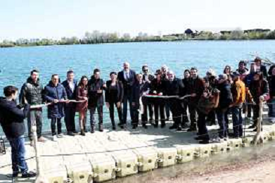 BUBANO(MORDANO) 08 04 2025 l inaugurazione dell impianto fotovoltaico galleggiante in via Ringhiera 1 a Bubano.NELLA FOTO SINDACO DI IMOLA MARCO PANIERI,SINDACO DI MORDANO NICOLA TASSINARI,IRENE PRIOLI REGIONE EMILIA ROMAGNA FOTO GIANNI SANNA-AG ALDO LIVERANI SAS