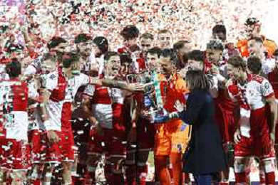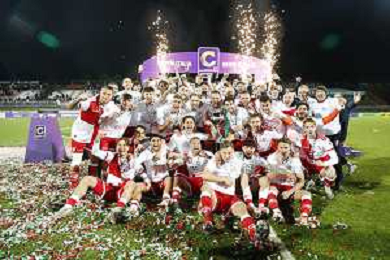 RIMINI 08-04-2024 Finale di coppa Italia di serie C RIMINI vs GIANA ERMINIO - nella foto: esultanza finale rimini per la vittoria della coppa Italia 2025 ©Claudio Zamagni/ AGENZIA ALDO LIVERANI SAS