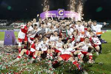 RIMINI 08-04-2024 Finale di coppa Italia di serie C RIMINI vs GIANA ERMINIO - nella foto: esultanza finale rimini per la vittoria della coppa Italia 2025©Claudio Zamagni/ AGENZIA ALDO LIVERANI SAS