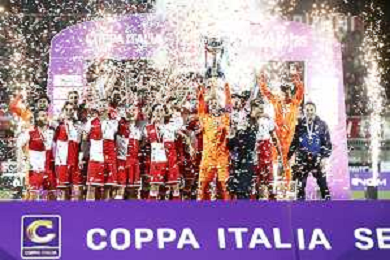 RIMINI 08-04-2024 Finale di coppa Italia di serie C RIMINI vs GIANA ERMINIO - nella foto: premiazione finale rimini per la vittoria della coppa Italia 2025 - trofeo ©Claudio Zamagni/ AGENZIA ALDO LIVERANI SAS