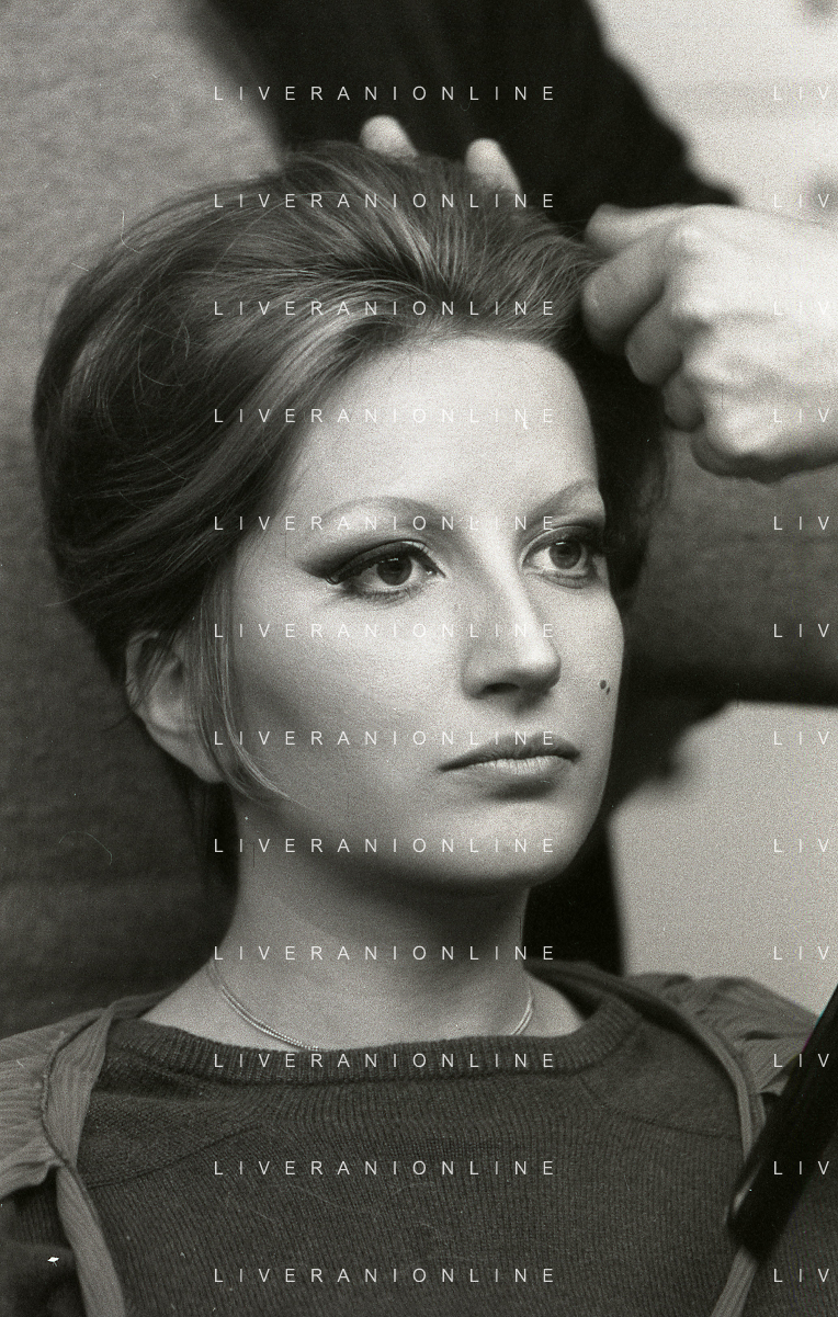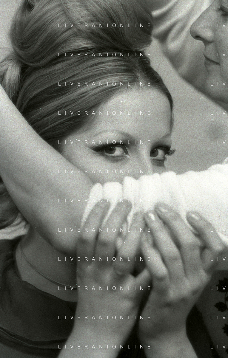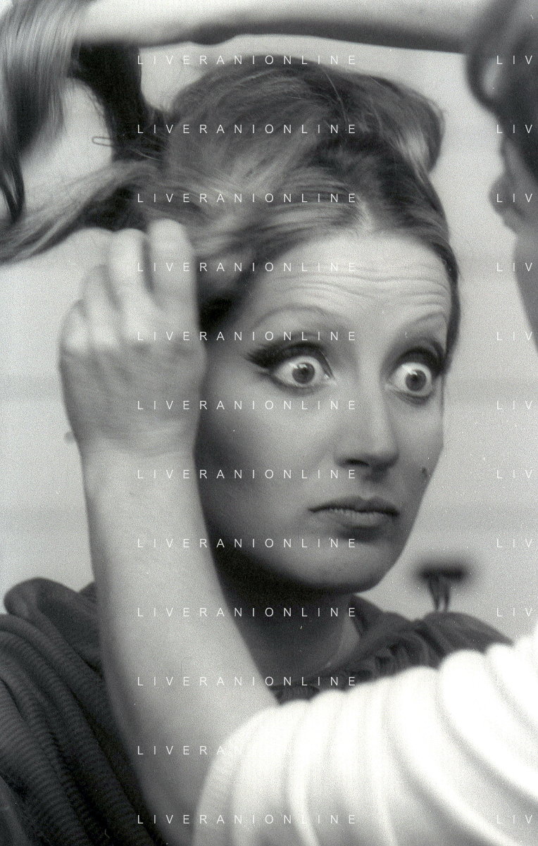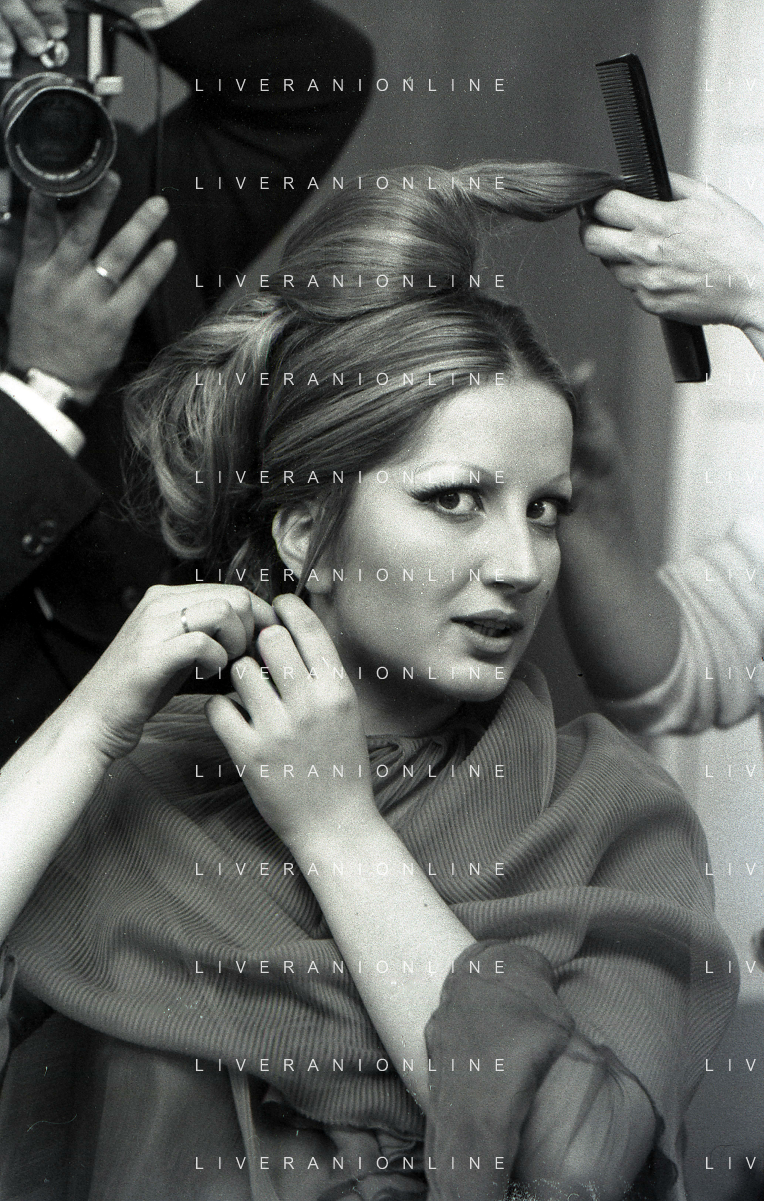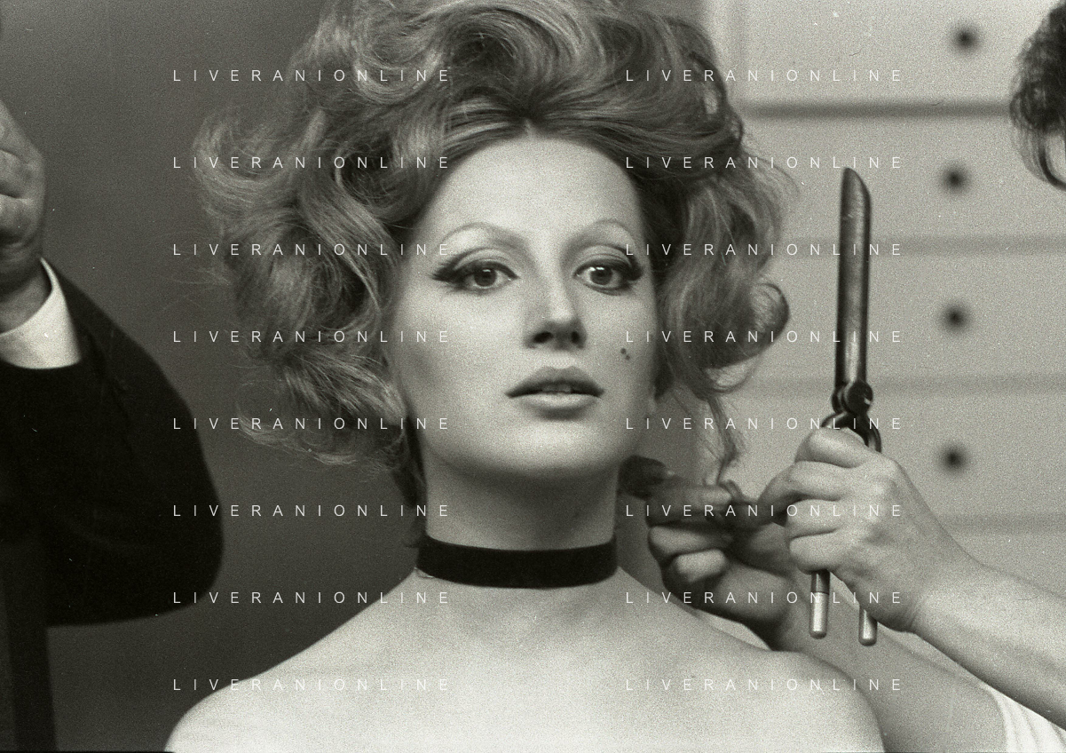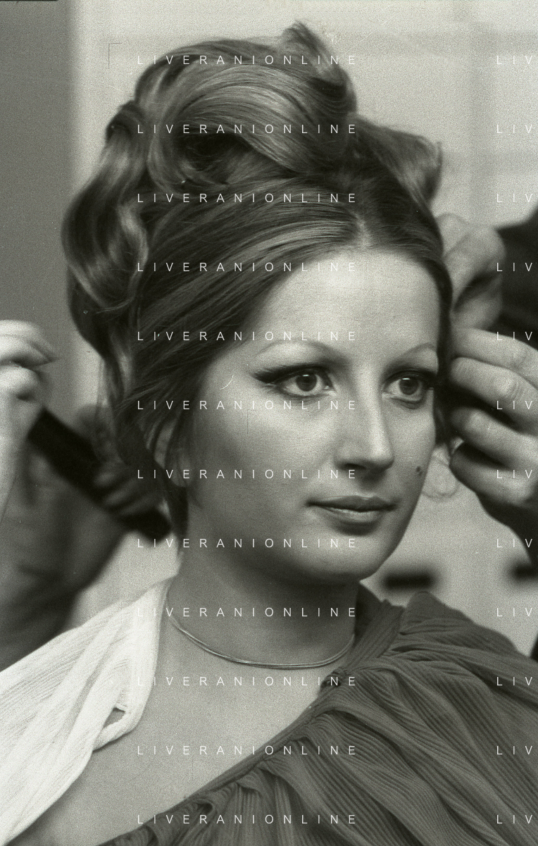 NEG-RETROSPETTIVA MINA MAZZINI CANTANTE NELLA FOTO MINA MAZZINI AL TRUCCO COL PARRUCCHIERE NELL'ANNO 1965 FOTO PIERO PASCUTTINI-ARCHIVIO GIOVANNI LIVERANI-AG ALDO LIVERANI SAS