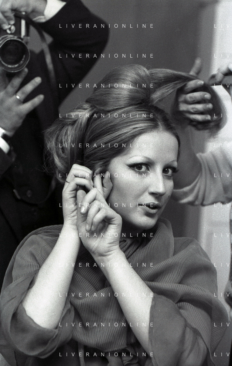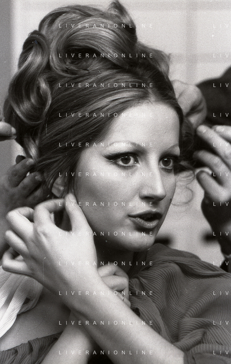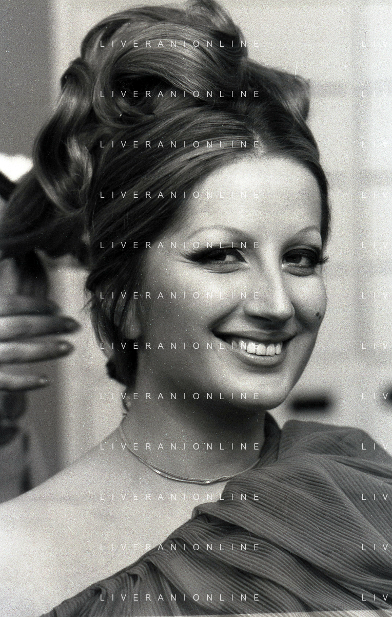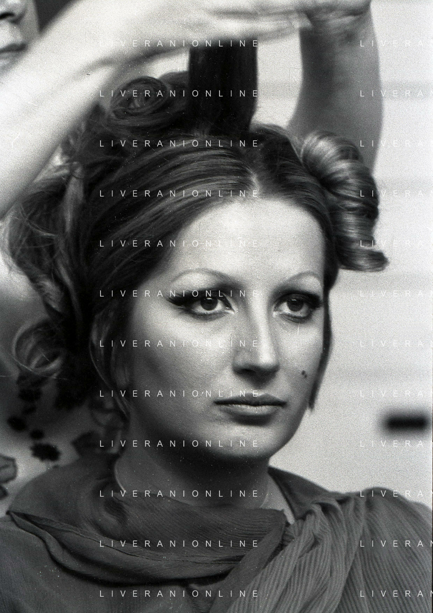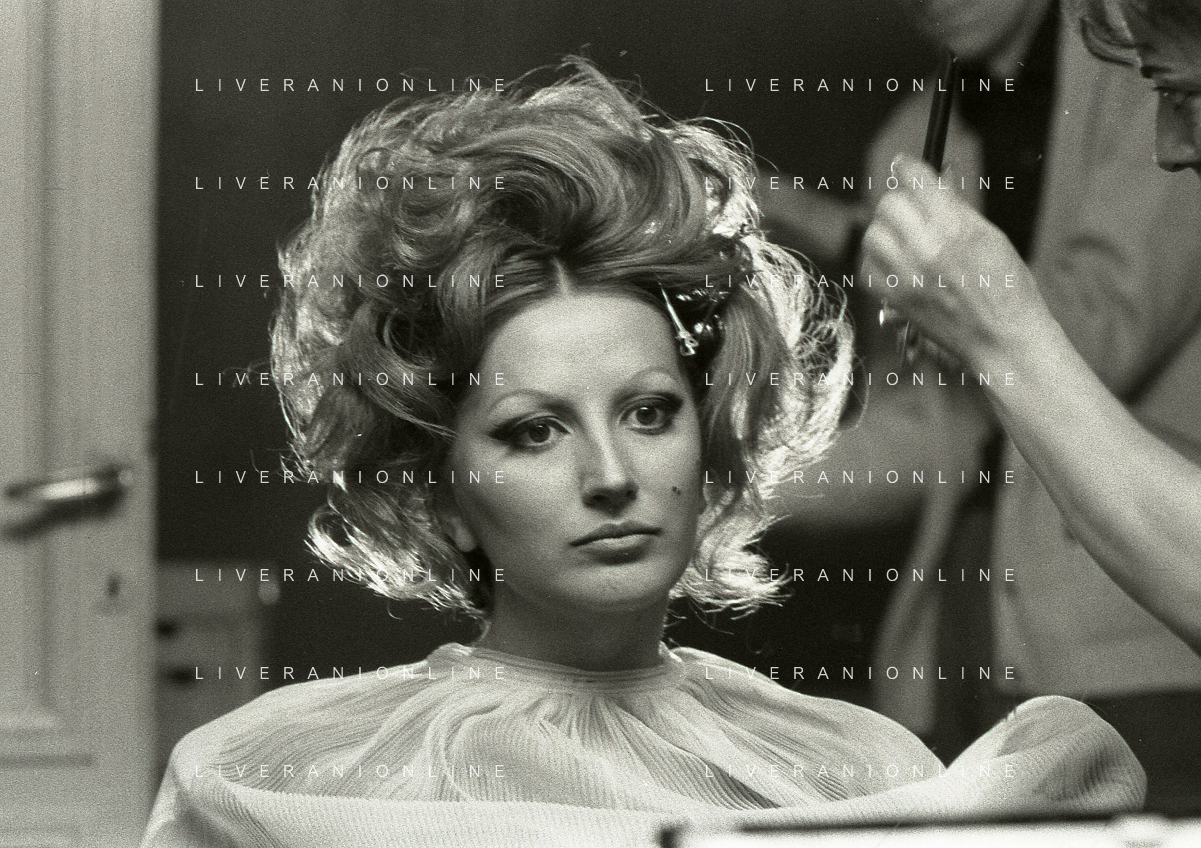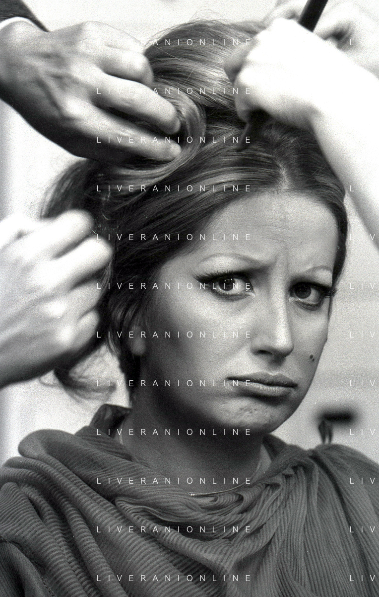 NEG-RETROSPETTIVA MINA MAZZINI CANTANTE NELLA FOTO MINA MAZZINI AL TRUCCO COL PARRUCCHIERE NELL'ANNO 1965 FOTO PIERO PASCUTTINI-ARCHIVIO GIOVANNI LIVERANI-AG ALDO LIVERANI SAS