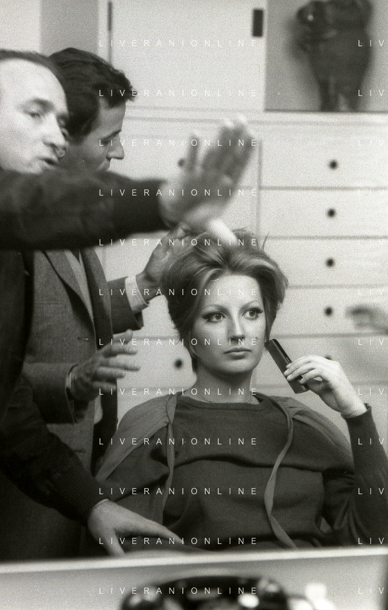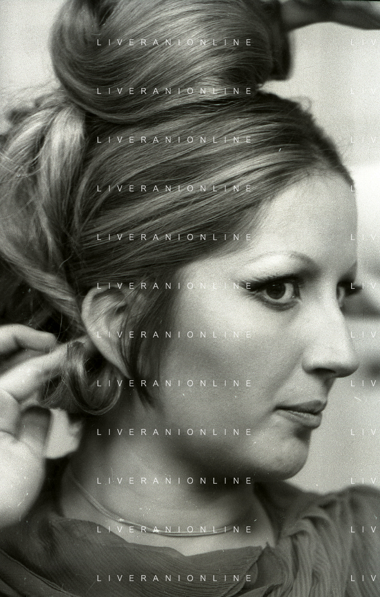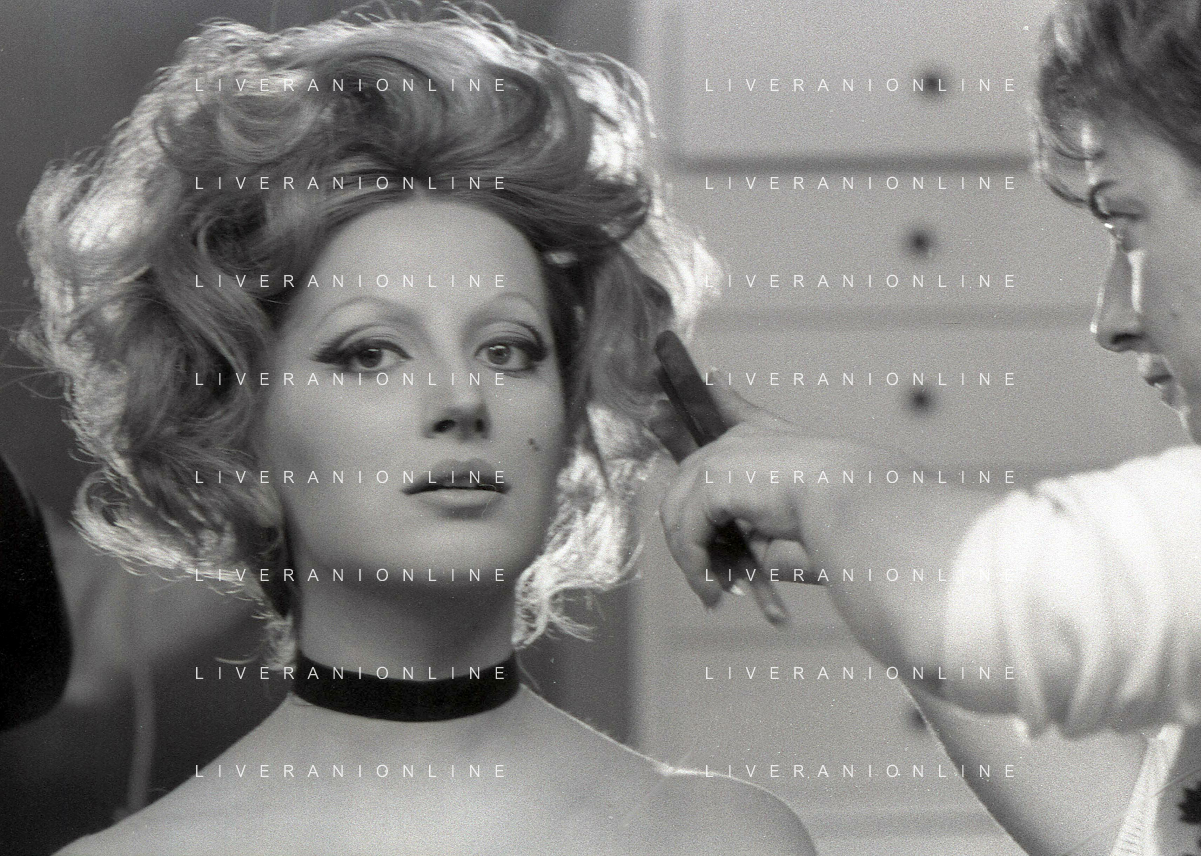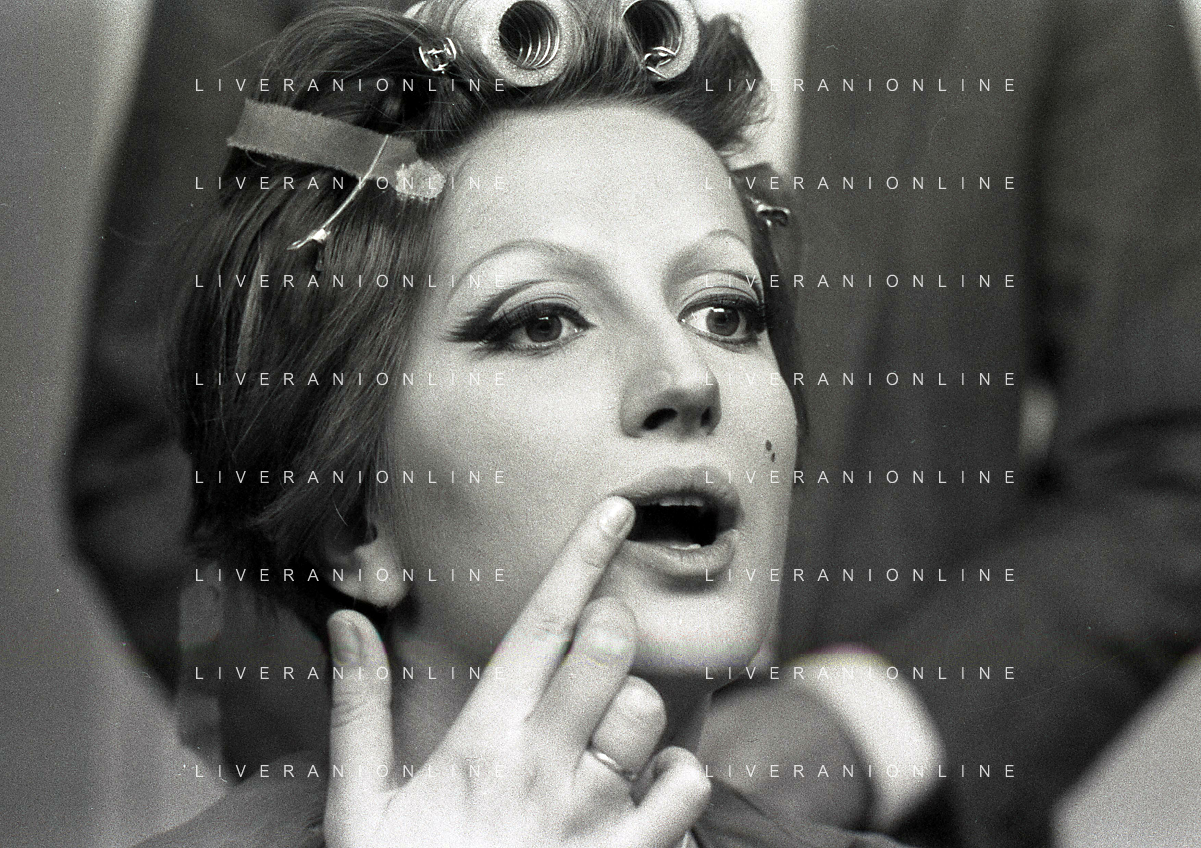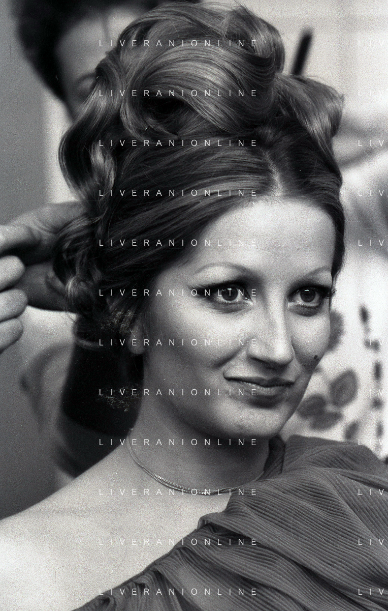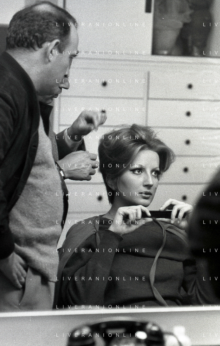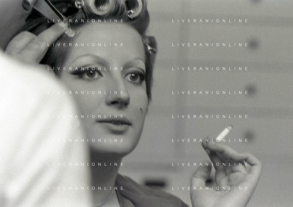 NEG-RETROSPETTIVA MINA MAZZINI CANTANTE NELLA FOTO MINA MAZZINI AL TRUCCO COL PARRUCCHIERE NELL'ANNO 1965 FOTO PIERO PASCUTTINI-ARCHIVIO GIOVANNI LIVERANI-AG ALDO LIVERANI SAS