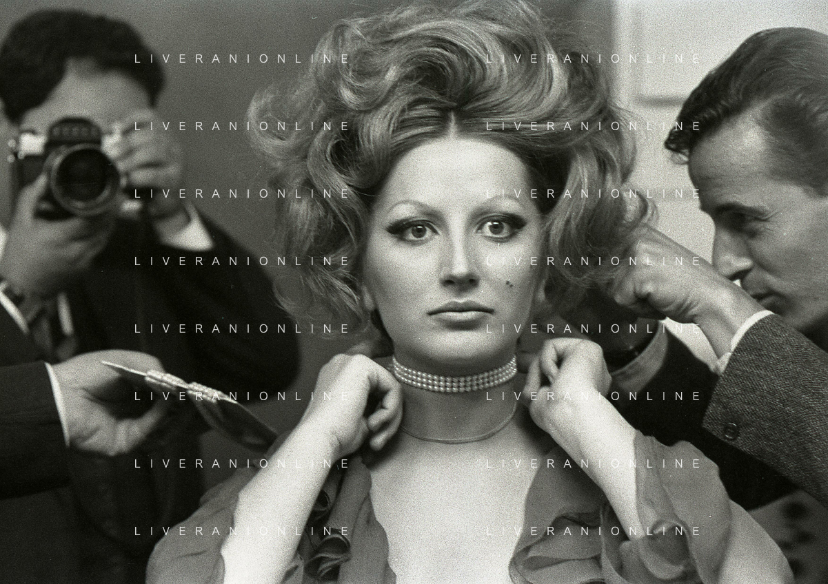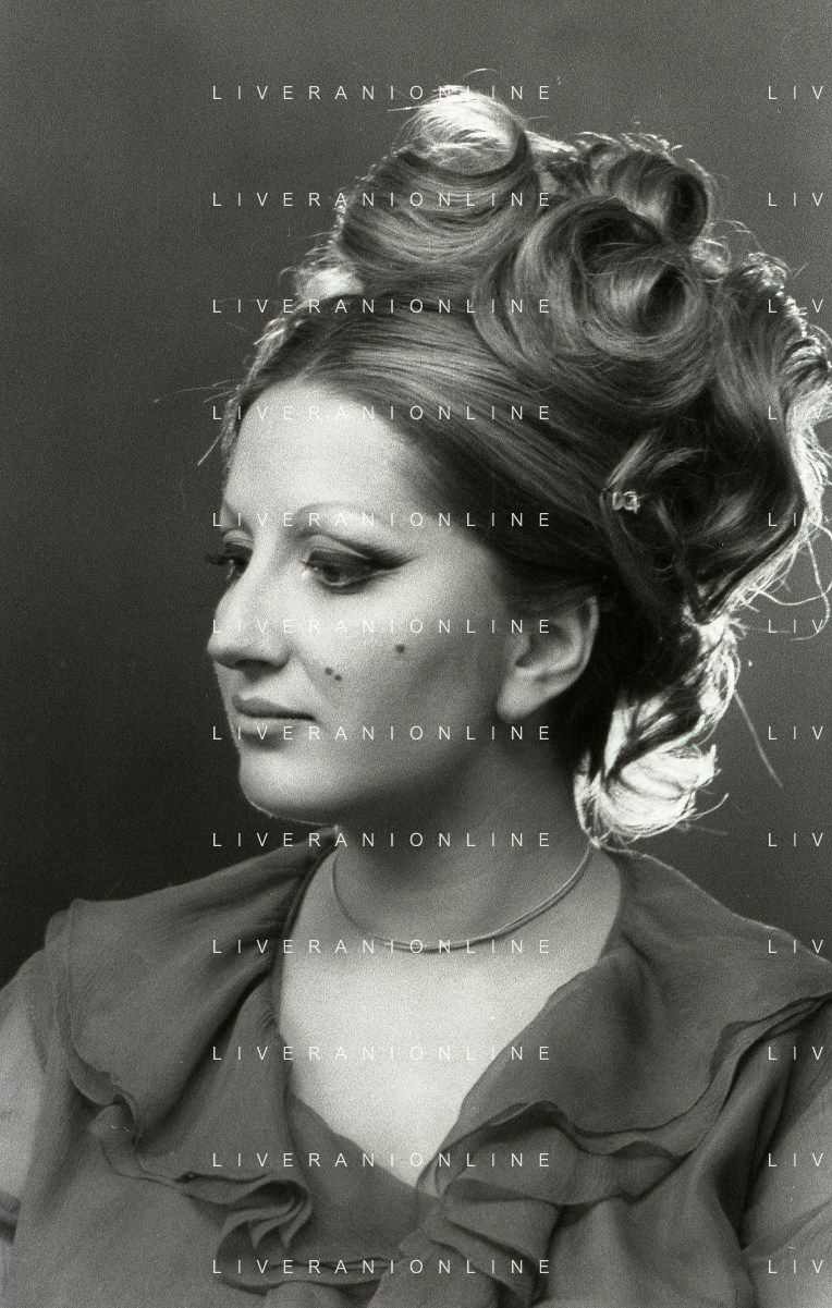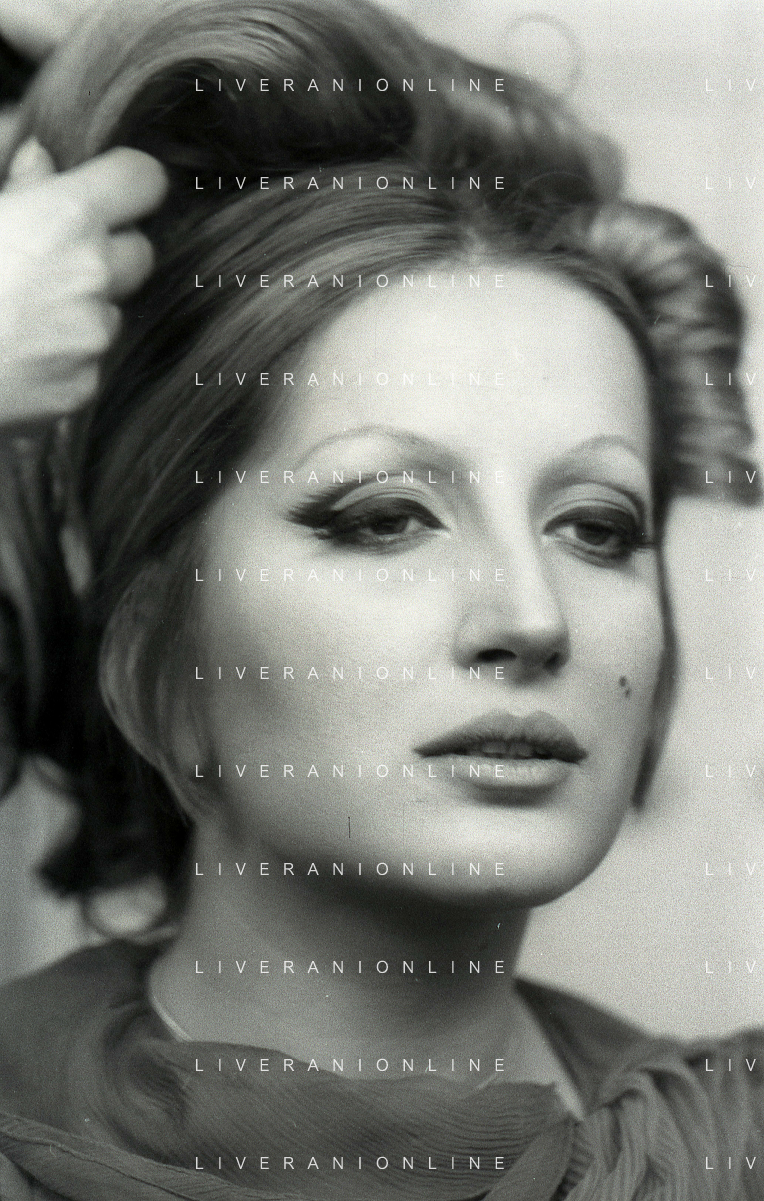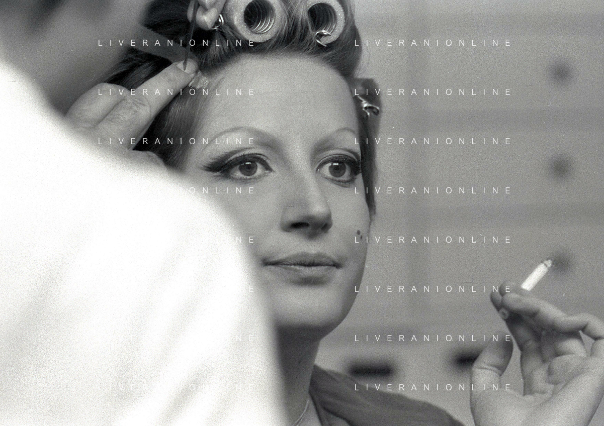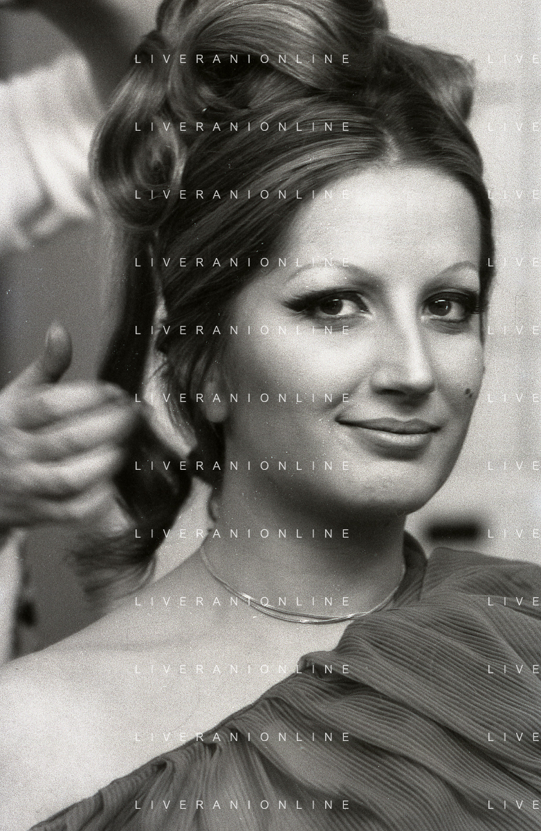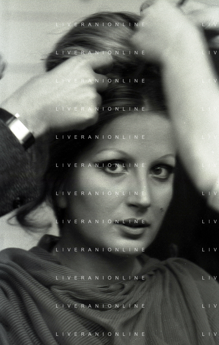 NEG-RETROSPETTIVA MINA MAZZINI CANTANTE NELLA FOTO MINA MAZZINI AL TRUCCO COL PARRUCCHIERE NELL'ANNO 1965 FOTO PIERO PASCUTTINI-ARCHIVIO GIOVANNI LIVERANI-AG ALDO LIVERANI SAS