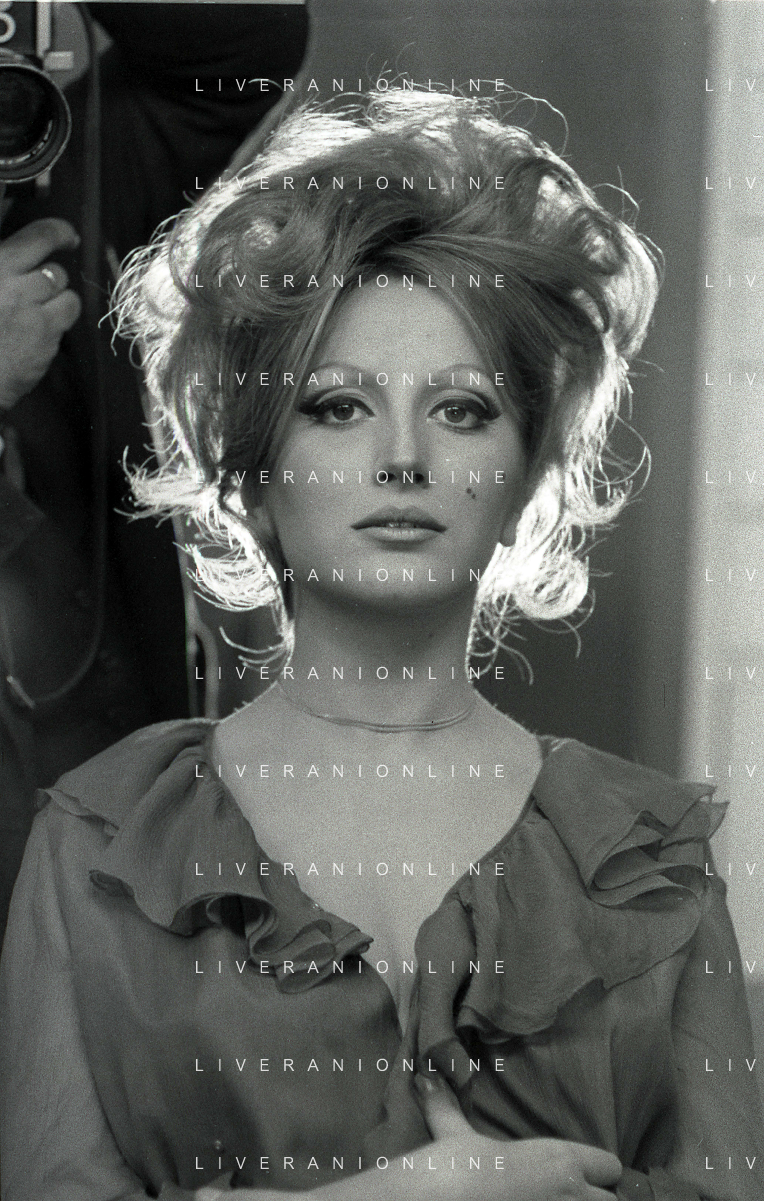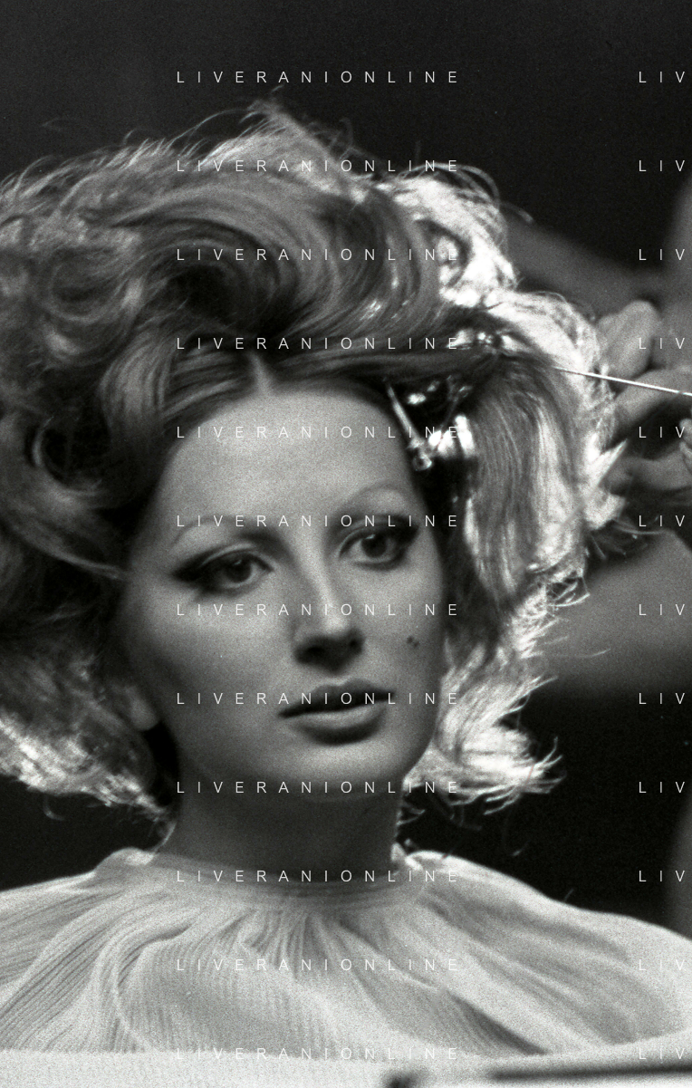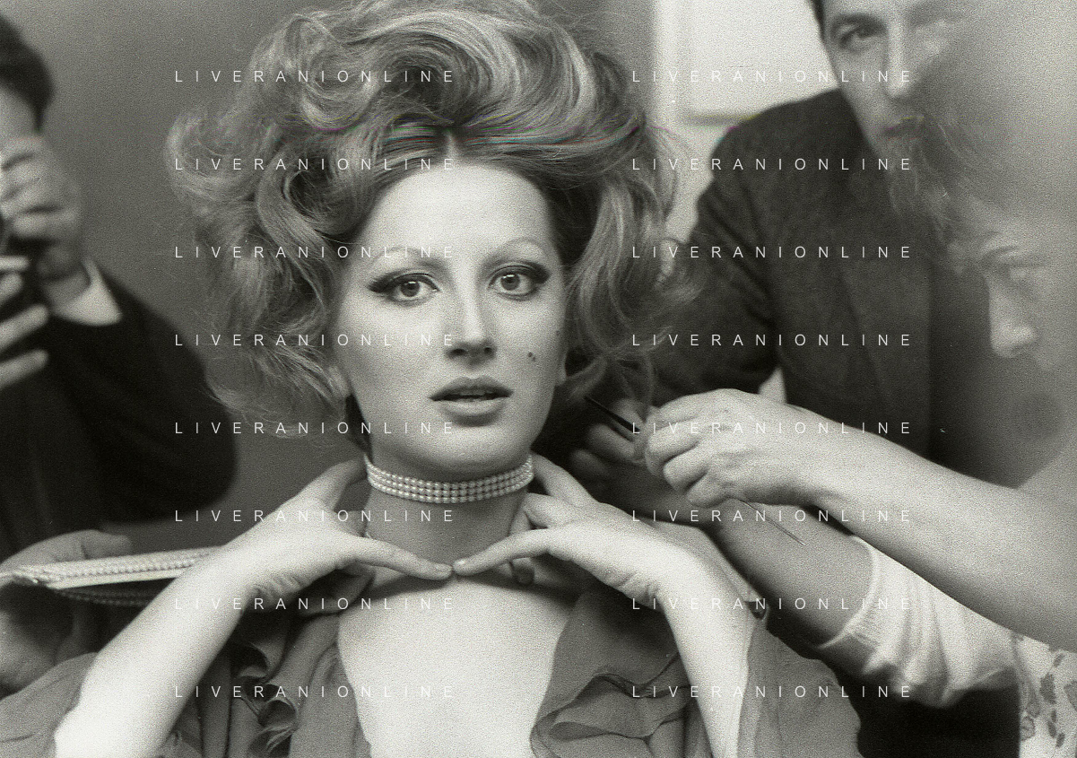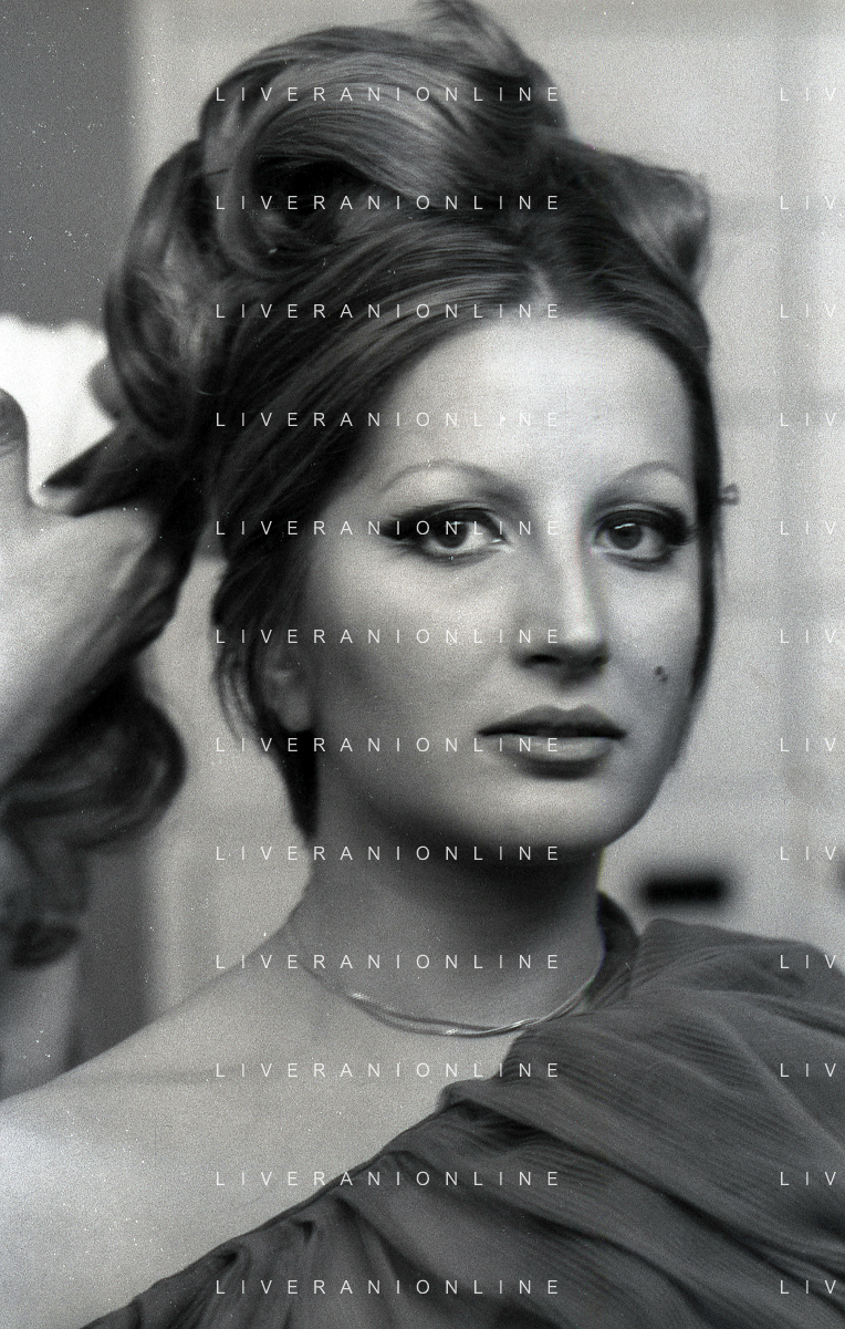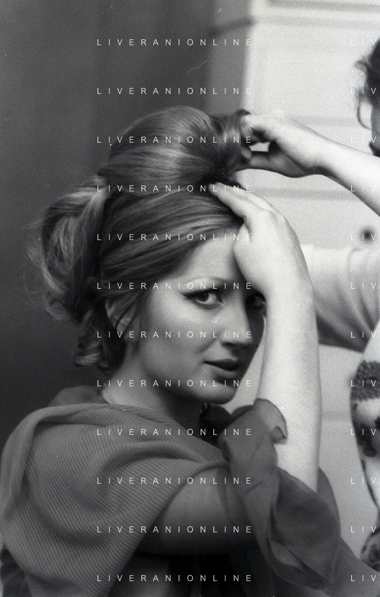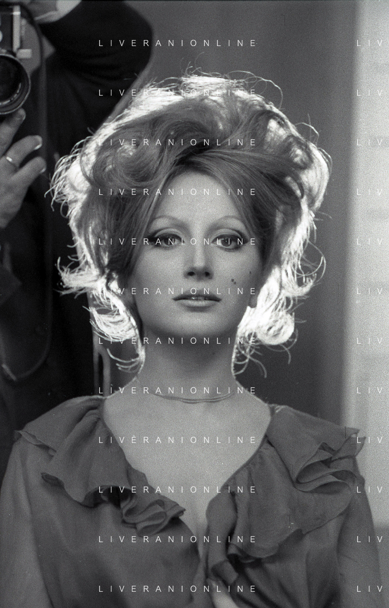NEG-RETROSPETTIVA MINA MAZZINI CANTANTE NELLA FOTO MINA MAZZINI AL TRUCCO COL PARRUCCHIERE NELL'ANNO 1965 FOTO PIERO PASCUTTINI-ARCHIVIO GIOVANNI LIVERANI-AG ALDO LIVERANI SAS