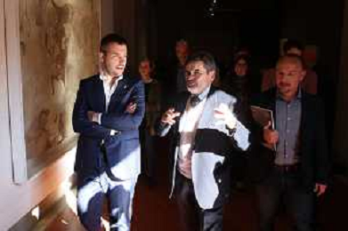IMOLA 11 04 2025 MUSEO DI SAN DOMENICO MOSTRA DI GERMANO SARTELLI NELLA FOTO DA SINISTRA ASSESSORE ALLA CULTURA GIACOMO GAMBI,DIRETORE DEI MUSEI DI SAN DOMENICO DIEGO GALIZZI E SINDACO DI IMOLA MARCO PANIERI FOTO GIANNI SANNA-AG ALDO LIVERANI SAS