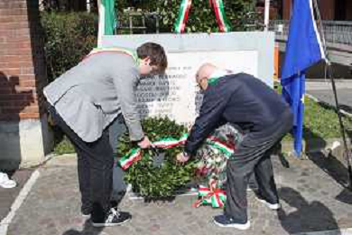 IMOLA 12 04 2025 commemorazione delle vittime dell'eccidio di Pozzo Becca NELLA FOTO DEPOSIZIONE DI UNA CORONA DA PARTE DI VITTORIO GARDI PARTIGIANO E PRESIDENTE DEL CONSIGLIO COMUNALE DI CASTEL SAN PIETRO RASPANTI RICCARDO ©SANNA - AG ALDO LIVERANI SAS