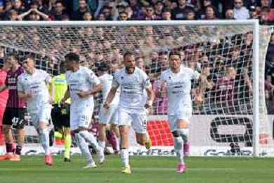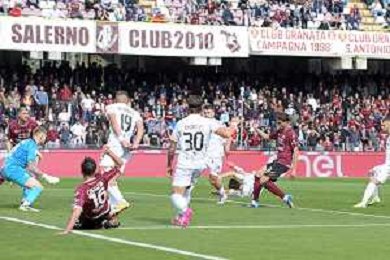 12 04 2025 - Salerno. Stadio Arechi. Campionato Serie B. Salernitana-Sud Tirol Nella foto gol 1-0 di Paolo Ghiglione Foto Giuseppe Cuozzo/Agenzia Liverani- AGENZIA ALDO LIVERANI SAS
