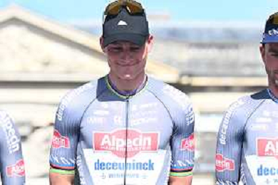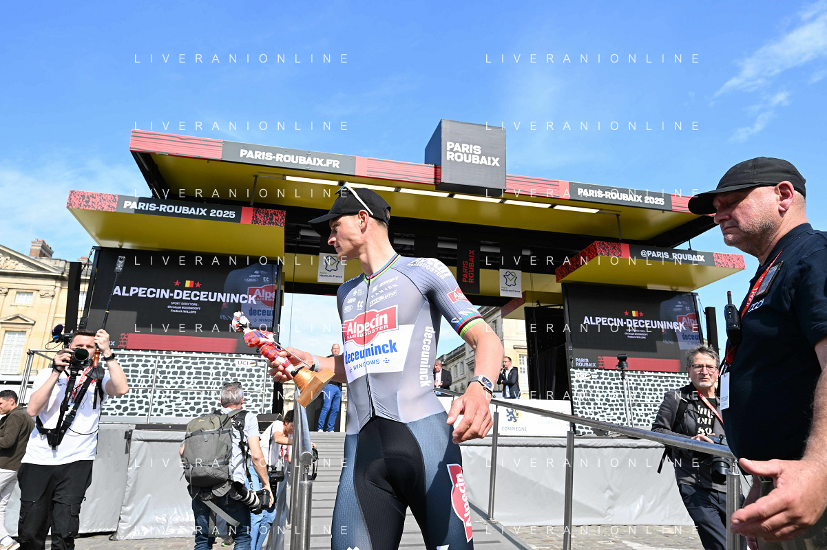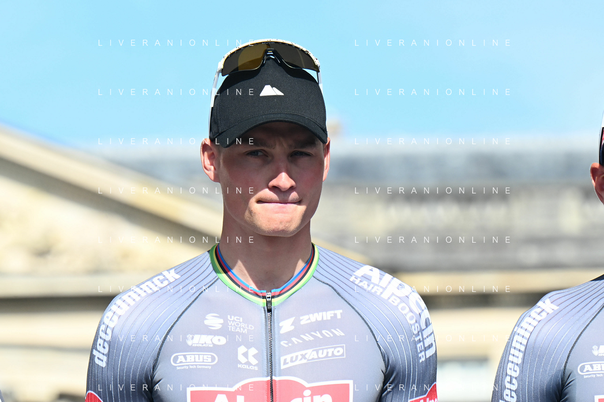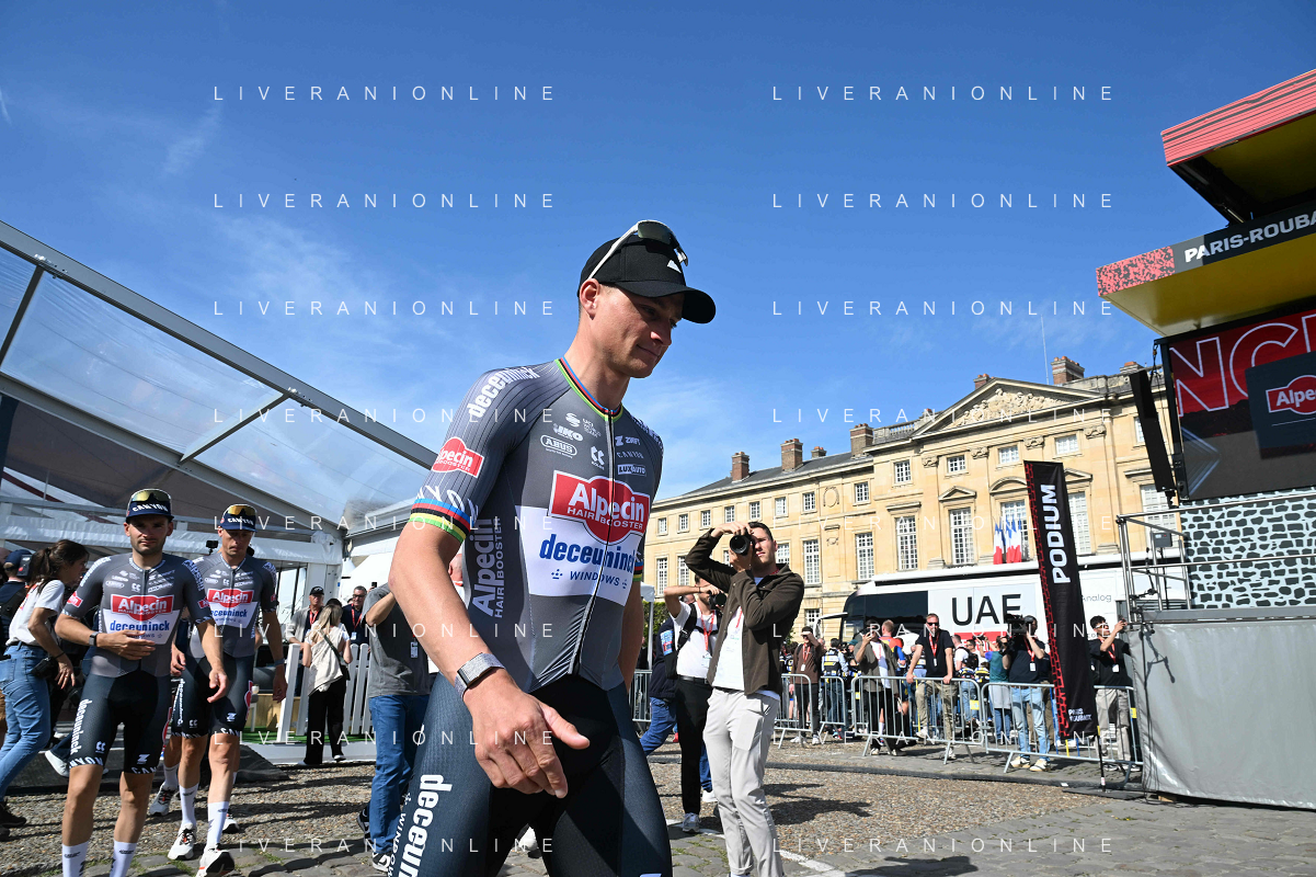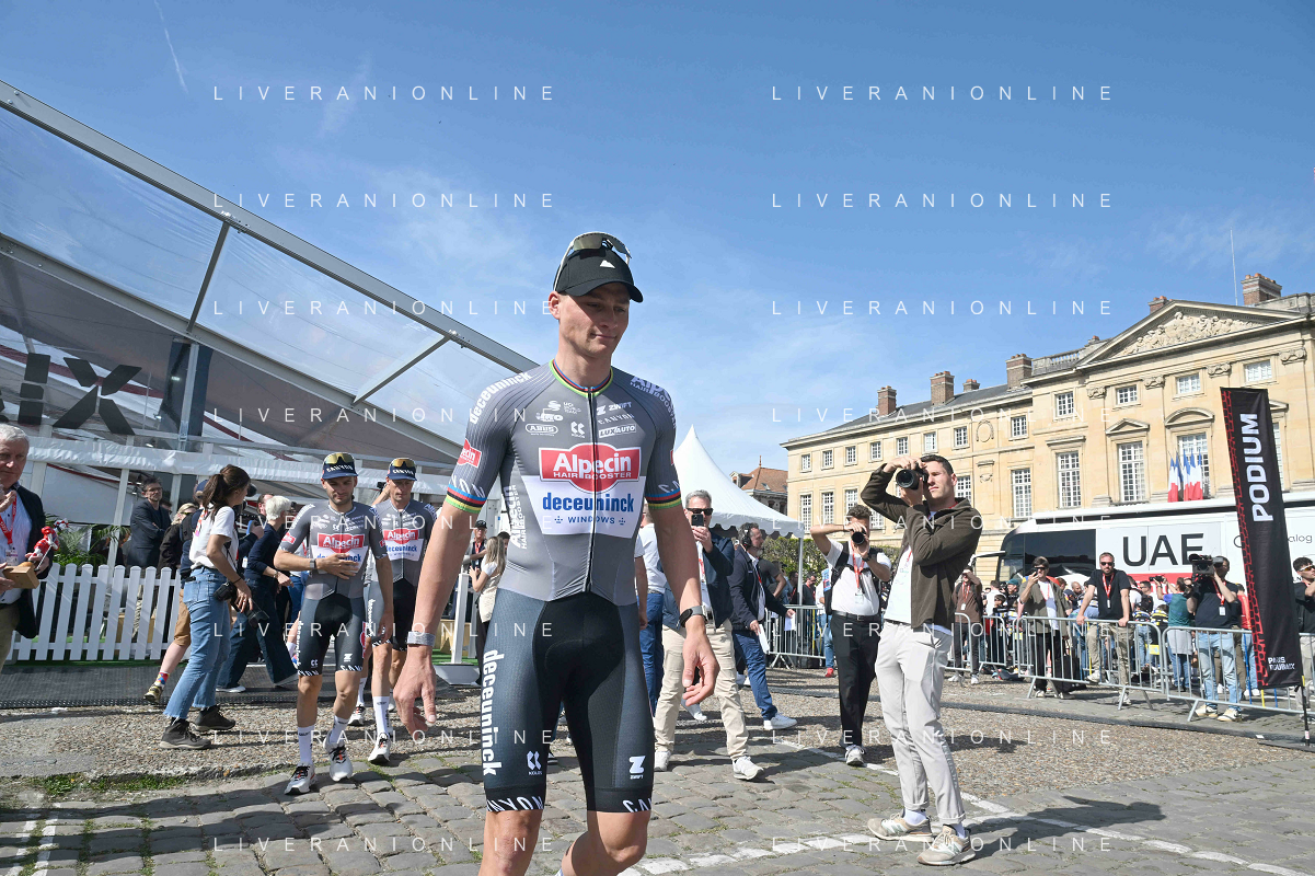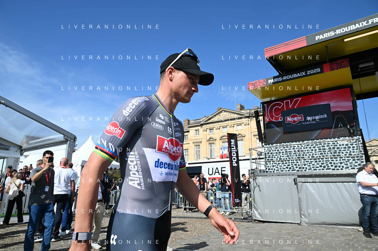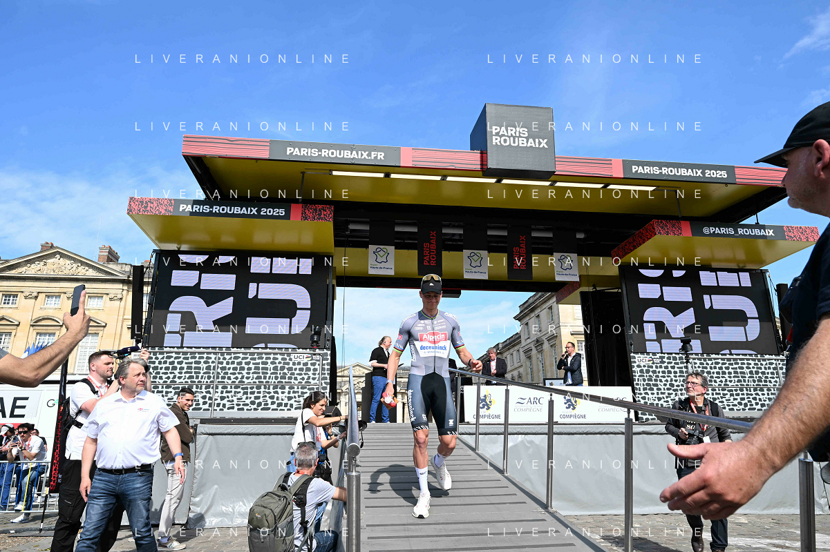 12-04-2025 Presentazione Squadre Paris - Roubaix 2025; 2025, Alpecin - Deceuninck; Van Der Poel, Mathieu; Compiegne; ©SIROTTI - AGENZIA ALDO LIVERANI SAS