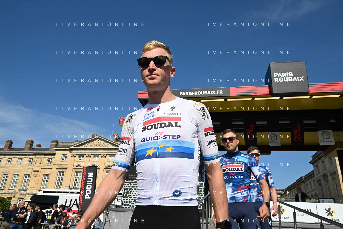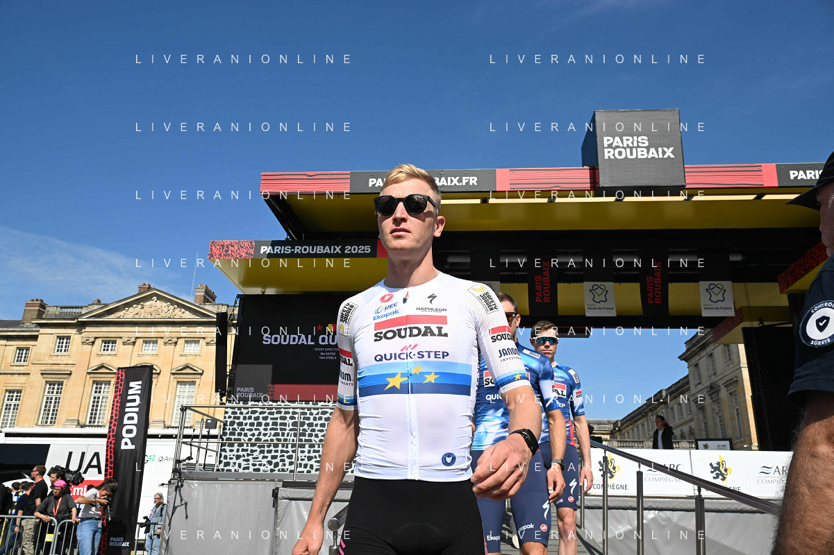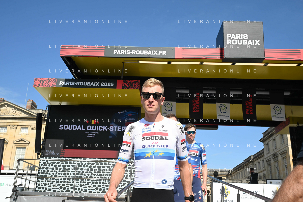12-04-2025 Presentazione Squadre Paris - Roubaix 2025; 2025, Soudal - Quick Step; Merlier, Tim; Compiegne; ©SIROTTI - AGENZIA ALDO LIVERANI SAS