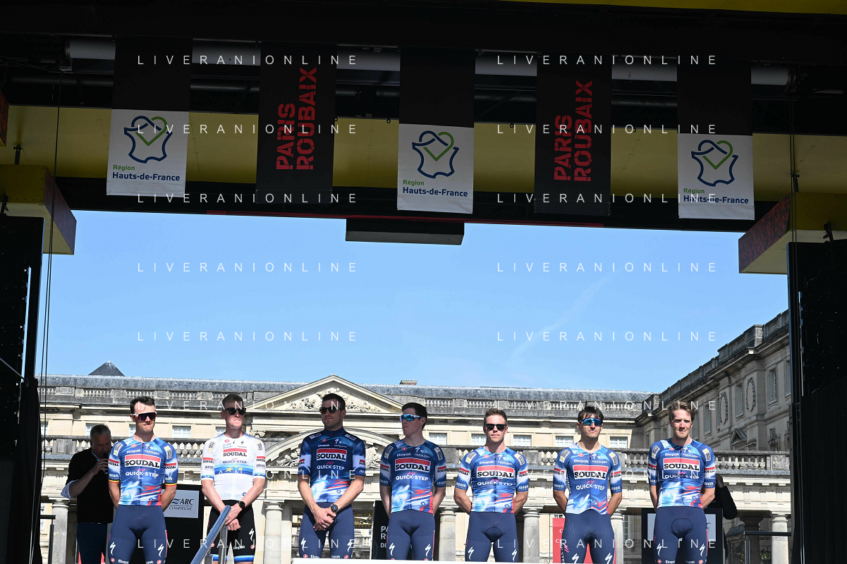 12-04-2025 Presentazione Squadre Paris - Roubaix 2025; 2025, Soudal - Quick Step; Compiegne; ©SIROTTI - AGENZIA ALDO LIVERANI SAS