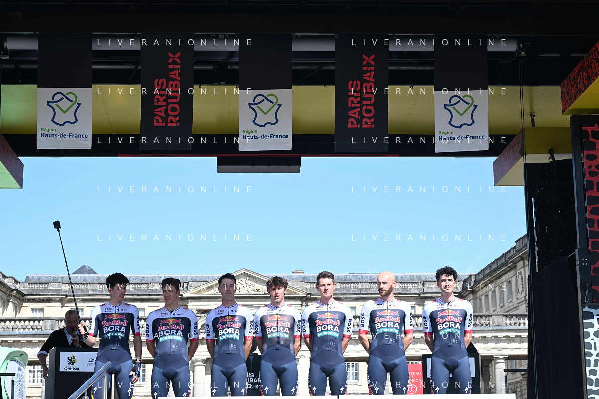 12-04-2025 Presentazione Squadre Paris - Roubaix 2025; 2025, Red Bull - Bora Hansgrohe; Compiegne; ©SIROTTI - AGENZIA ALDO LIVERANI SAS