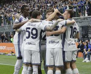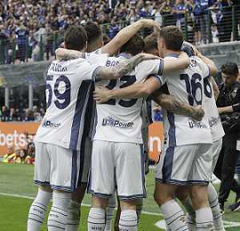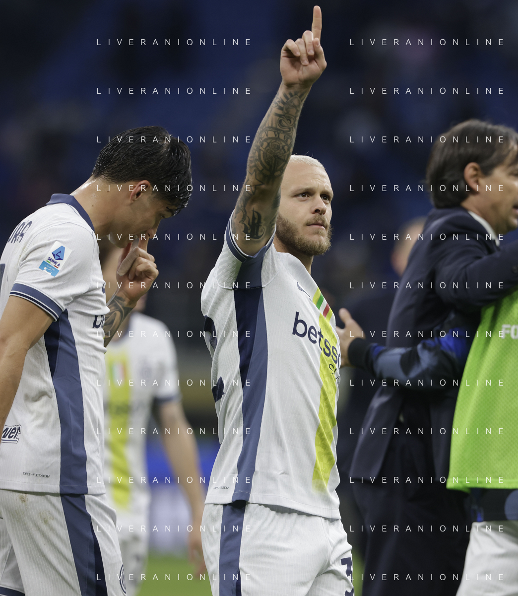 Inter vs Cagliari nella foto Federico Dimarco (Inter) e dietrio Carlos Augusto (Inter) Milano 12-04-2025 Stadio Giuseppe Meazza - San Siro Campionato Serie A Enilive - 32a giornata foto Roberto Garavaglia/Agenzia Aldo Liverani sas- AGENZIA ALDO LIVERANI SAS