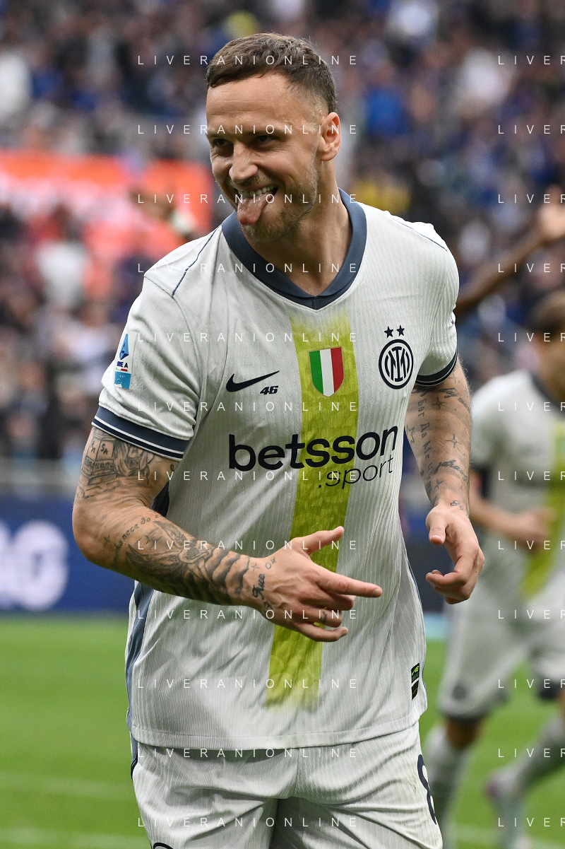 Inter vs Cagliari nella foto Marko Arnautovic (Inter) esultanza dopo il gol dell'1 a 0 Milano 12-04-2025 Stadio Giuseppe Meazza - San Siro Campionato Serie A Enilive - 32a giornata foto Roberto Garavaglia/Agenzia Aldo Liverani sas- AGENZIA ALDO LIVERANI SAS