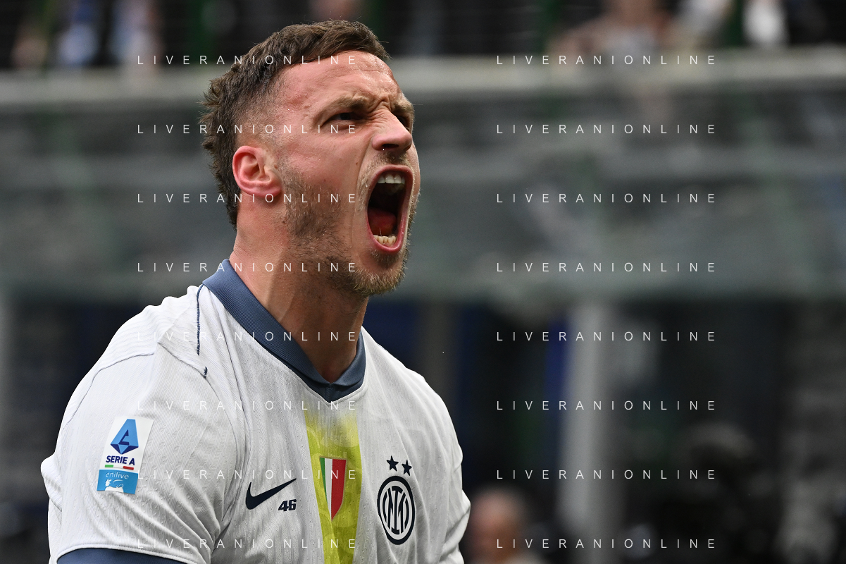 Inter vs Cagliari nella foto Nicolo’ Barella (Inter) Milano 12-04-2025 Stadio Giuseppe Meazza - San Siro Campionato Serie A Enilive - 32a giornata foto Roberto Garavaglia/Agenzia Aldo Liverani sas- AGENZIA ALDO LIVERANI SAS