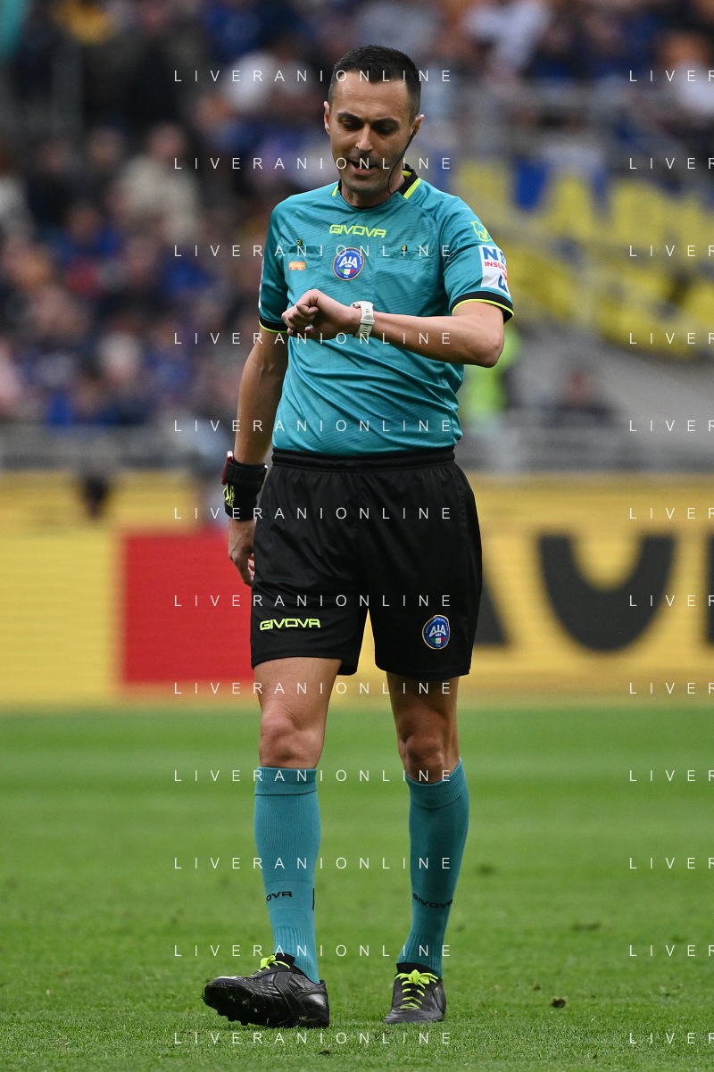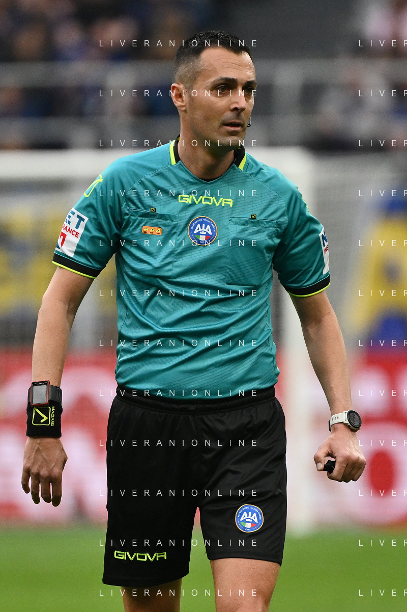 Inter vs Cagliari nella foto l'arbitro Marco Di Bello di Brindisi Milano 12-04-2025 Stadio Giuseppe Meazza - San Siro Campionato Serie A Enilive - 32a giornata foto Roberto Garavaglia/Agenzia Aldo Liverani sas- AGENZIA ALDO LIVERANI SAS