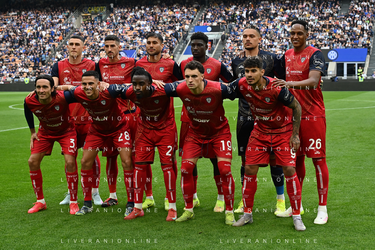 Inter vs Cagliari nella foto formazione Cagliari, in piedi da SX Roberto Piccoli, Alessandro Deiola, Jose’ Palomino, Nichel Ndary Adopo, Elia Caprile e Yerry Mina Gonzalez; in basso da SX Tommaso Augello, Gabriele Zappa, Antoine Makoumbou, Nadir Zortea e Florinel Coman Milano 12-04-2025 Stadio Giuseppe Meazza - San Siro Campionato Serie A Enilive - 32a giornata foto Roberto Garavaglia/Agenzia Aldo Liverani sas- AGENZIA ALDO LIVERANI SAS
