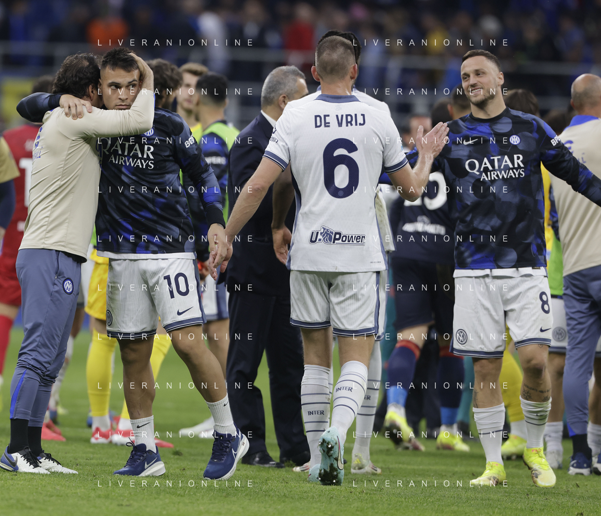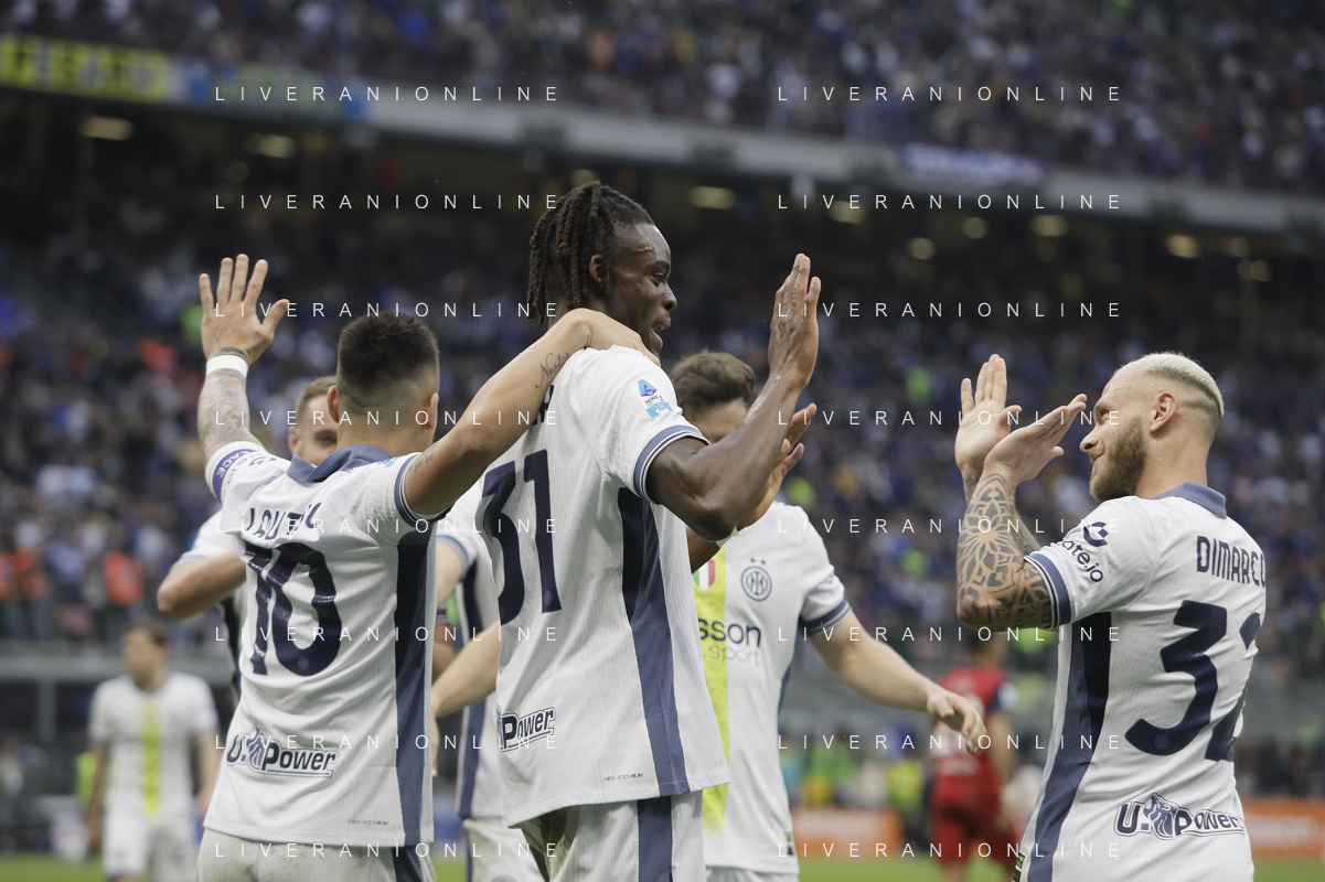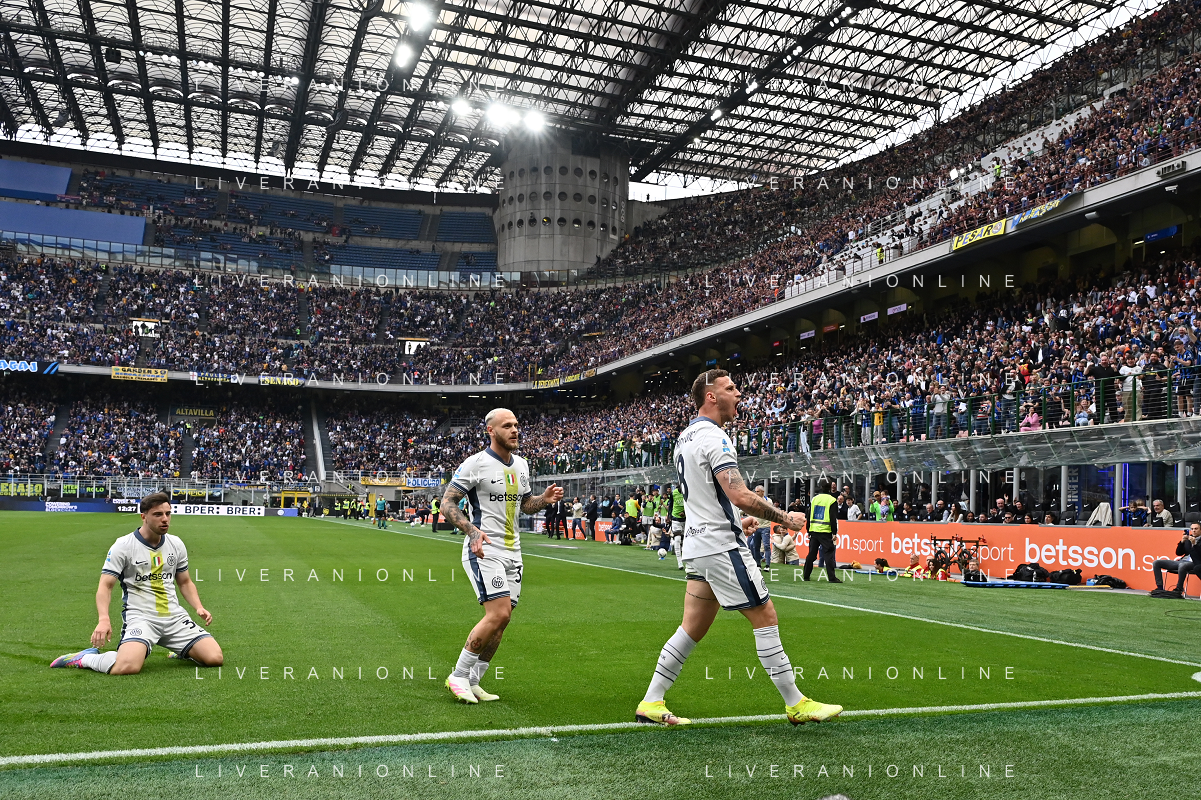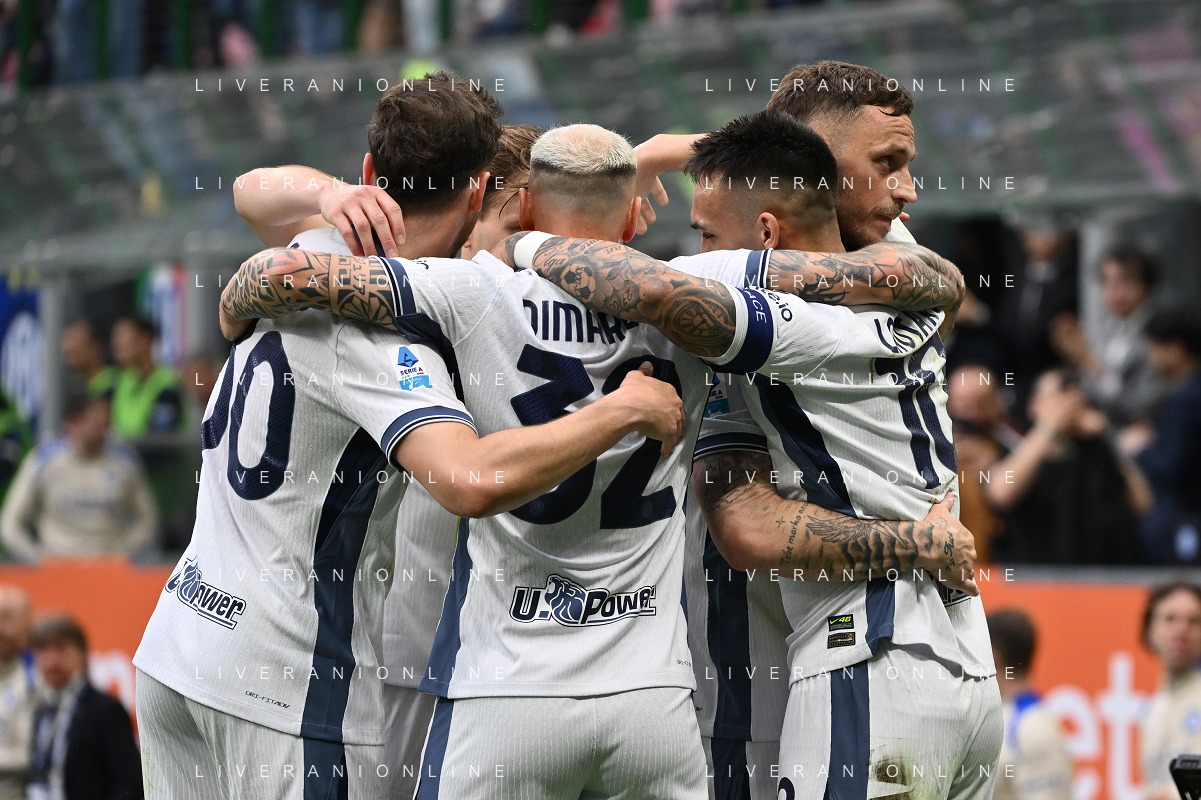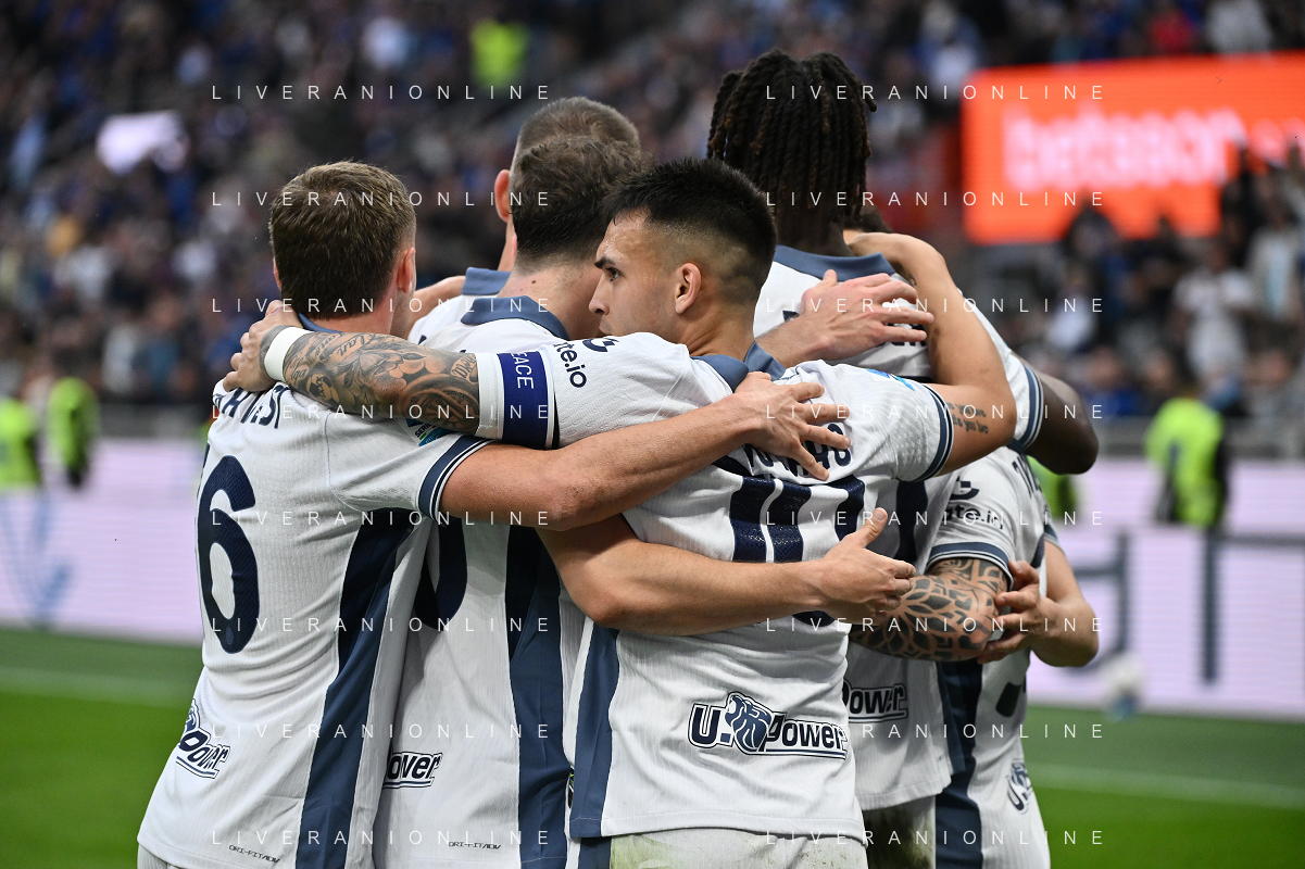 Inter vs Cagliari nella foto giocatori Inter esultanza dopo il gol del 3 a 1 Milano 12-04-2025 Stadio Giuseppe Meazza - San Siro Campionato Serie A Enilive - 32a giornata foto Roberto Garavaglia/Agenzia Aldo Liverani sas