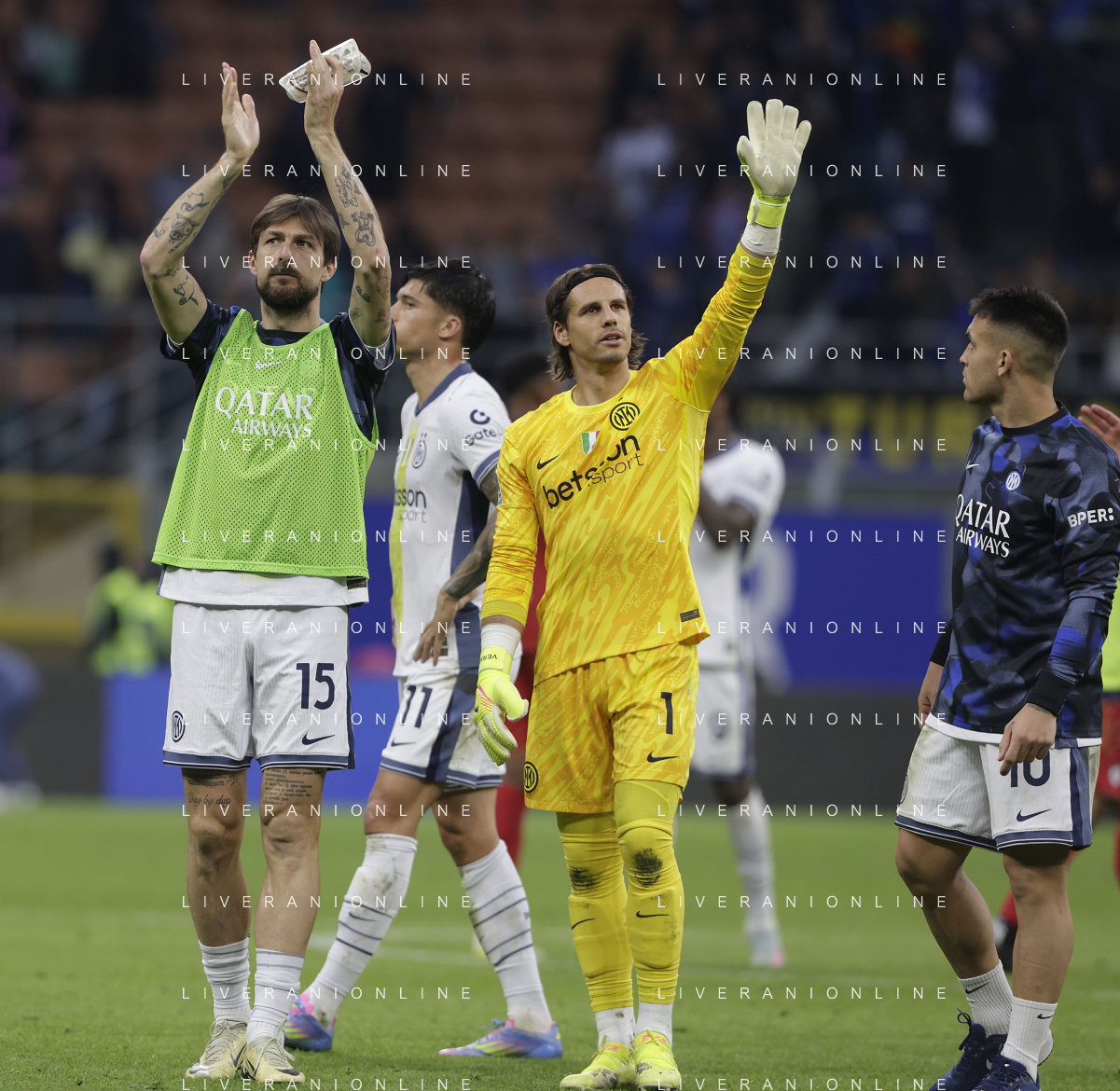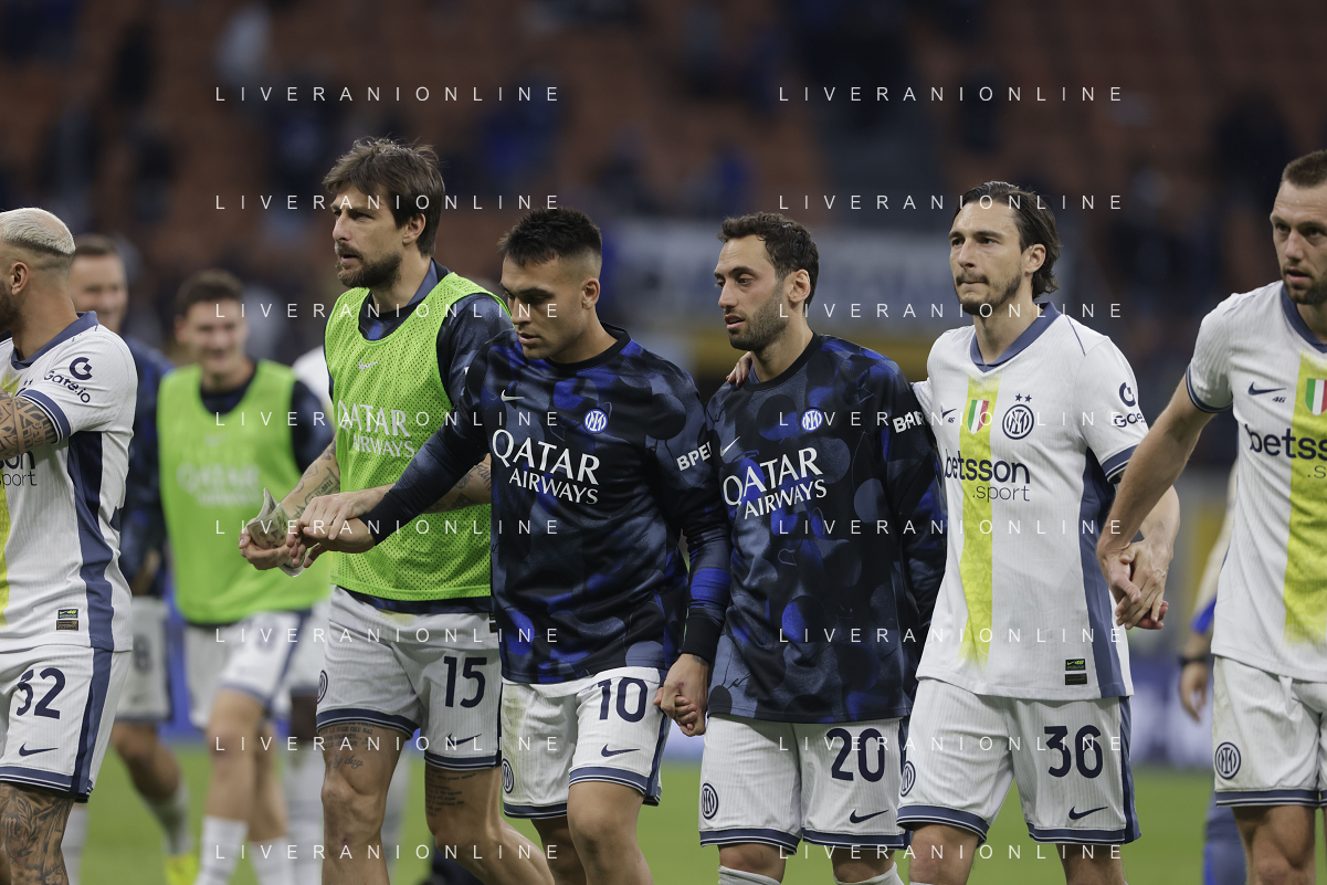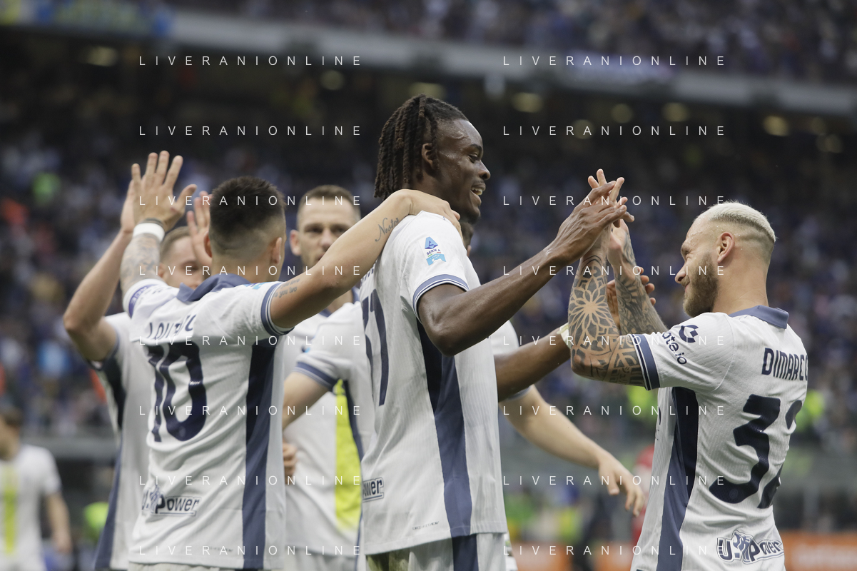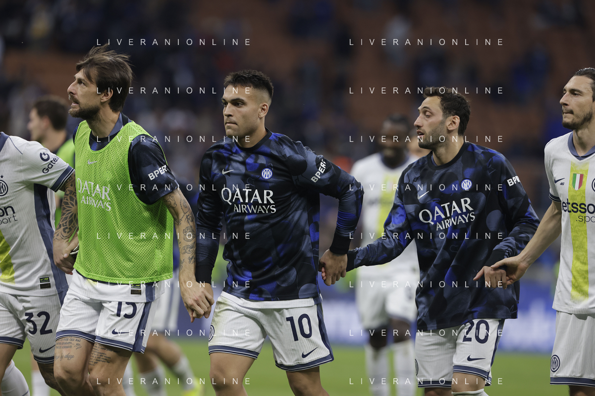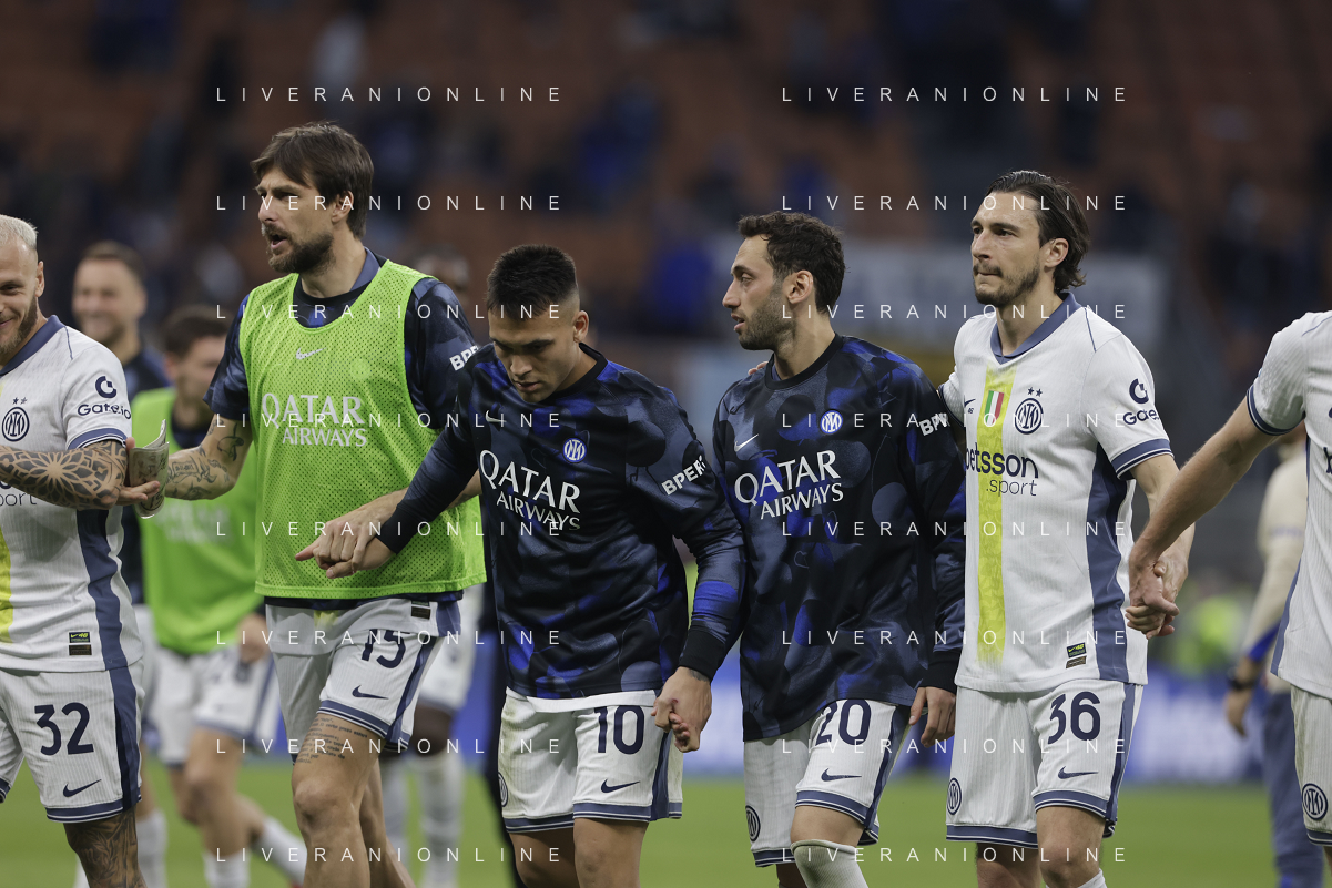 Inter vs Cagliari nella foto giocatori Inter esultanza dopo il gol del 3 a 1 Milano 12-04-2025 Stadio Giuseppe Meazza - San Siro Campionato Serie A Enilive - 32a giornata foto Roberto Garavaglia/Agenzia Aldo Liverani sas