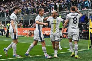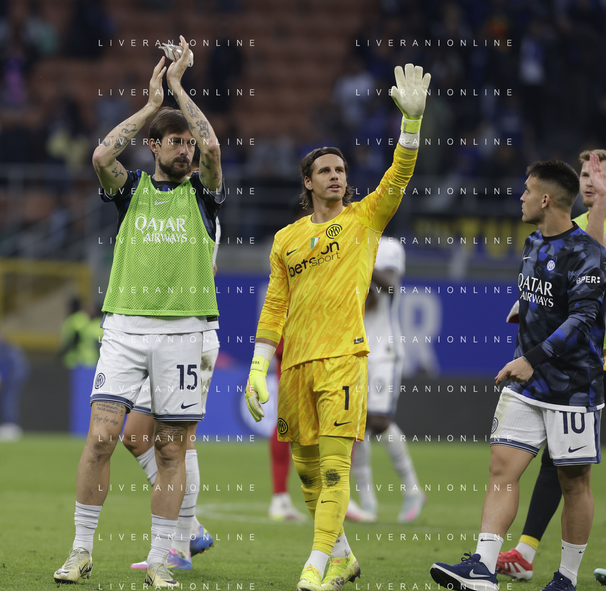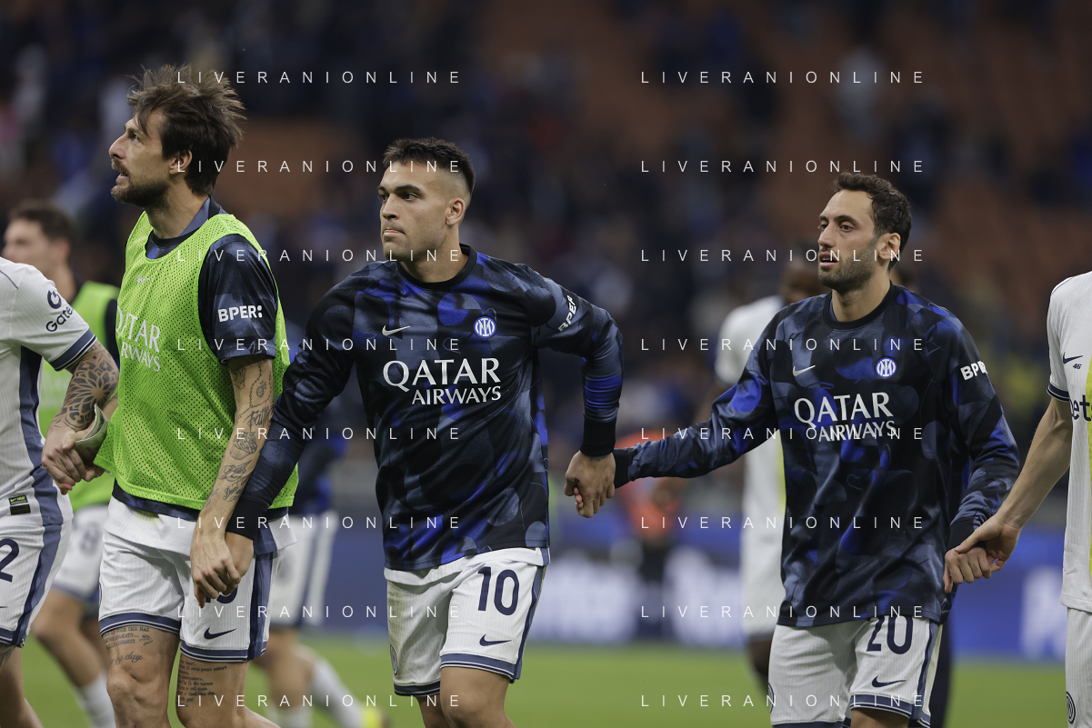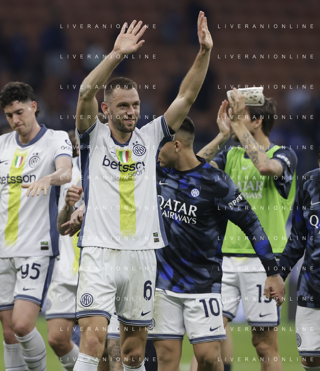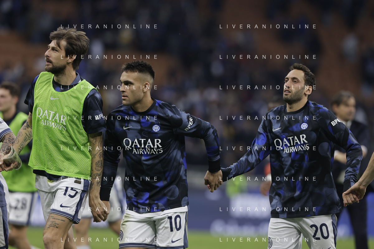 Inter vs Cagliari nella foto giocatori Inter esultanza dopo il gol del 3 a 1 Milano 12-04-2025 Stadio Giuseppe Meazza - San Siro Campionato Serie A Enilive - 32a giornata foto Roberto Garavaglia/Agenzia Aldo Liverani sas