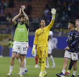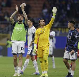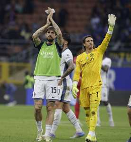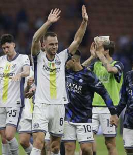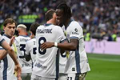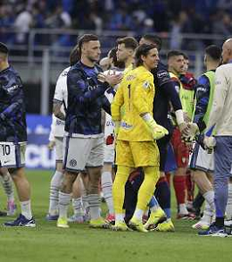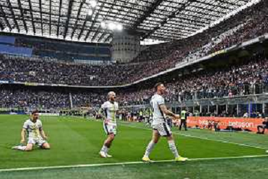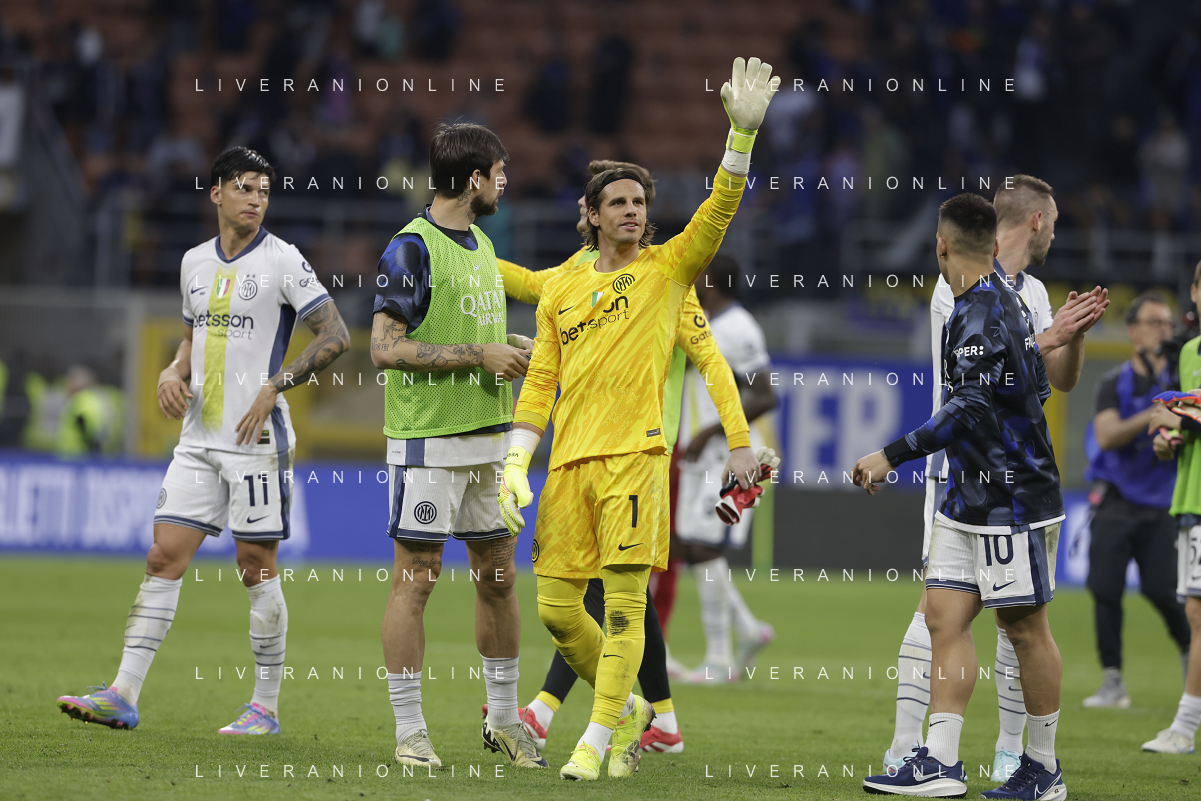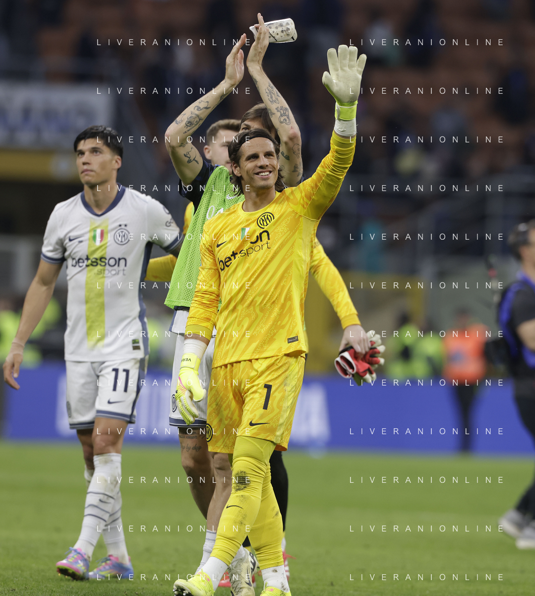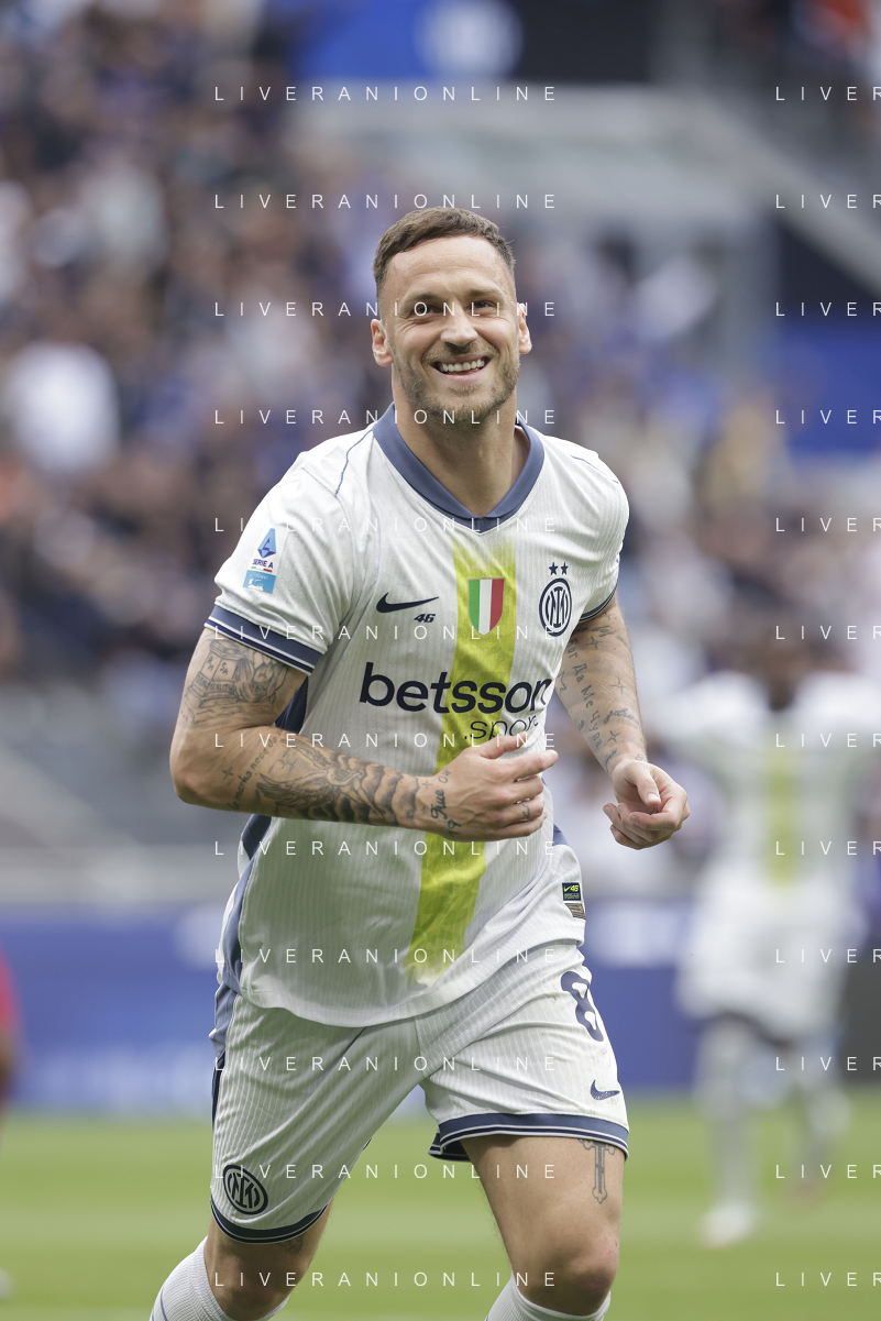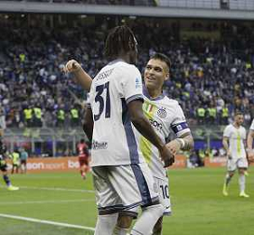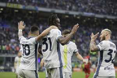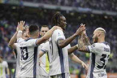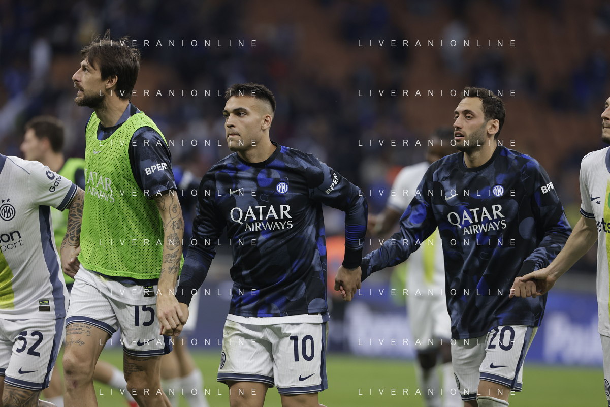 Inter vs Cagliari nella foto giocatori Inter esultanza dopo il gol del 3 a 1 Milano 12-04-2025 Stadio Giuseppe Meazza - San Siro Campionato Serie A Enilive - 32a giornata foto Roberto Garavaglia/Agenzia Aldo Liverani sas
