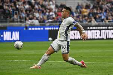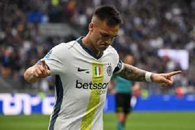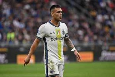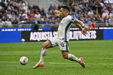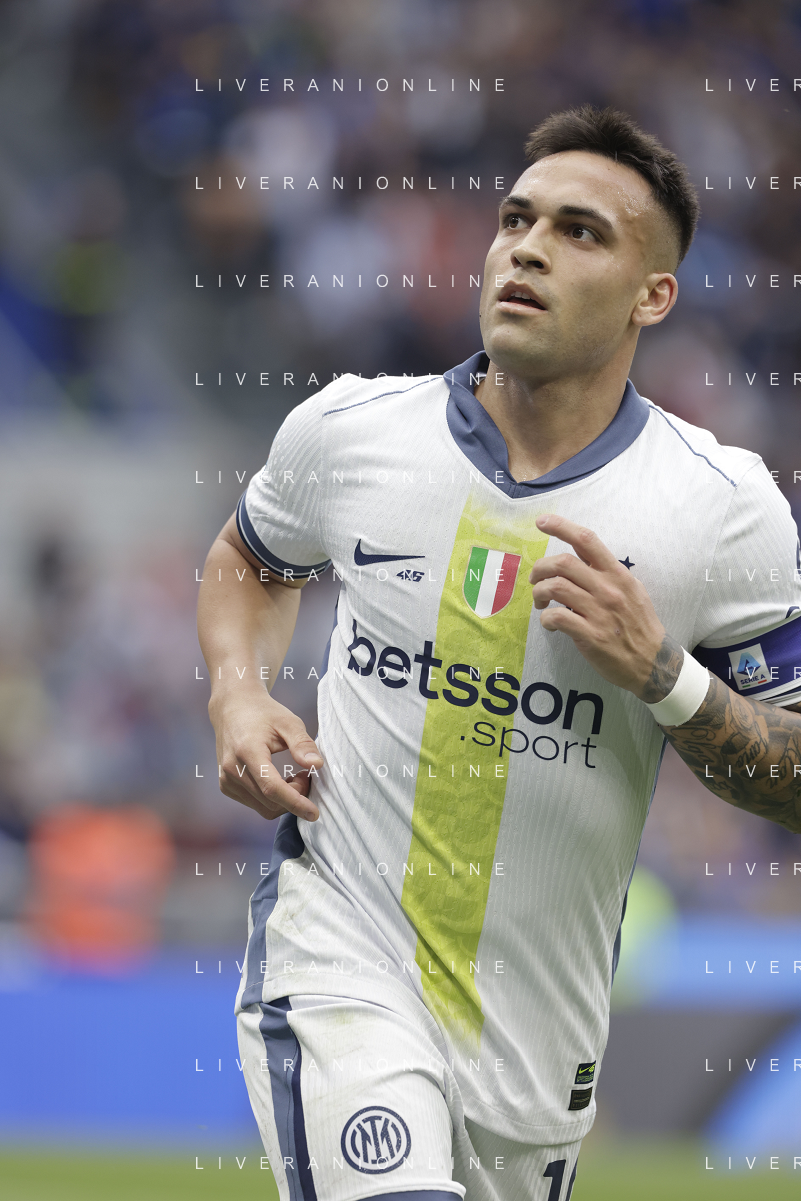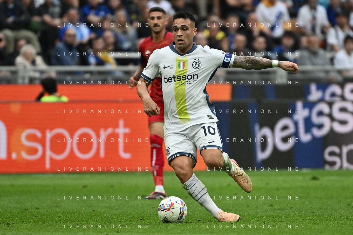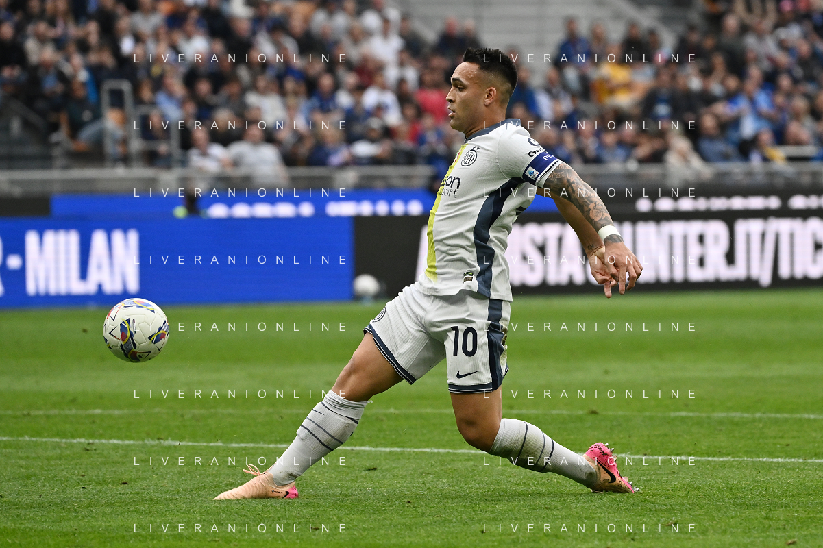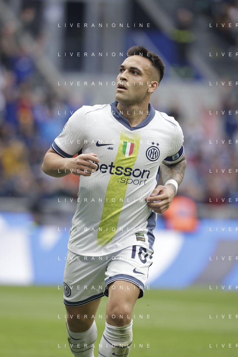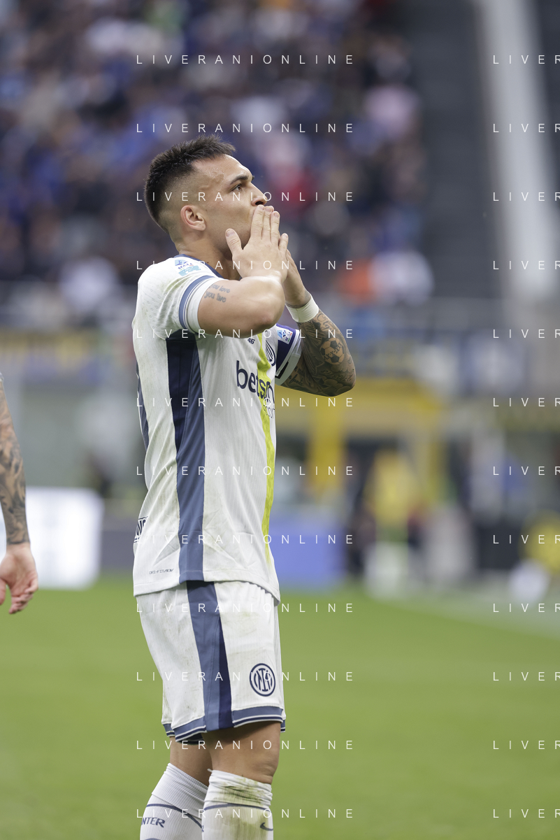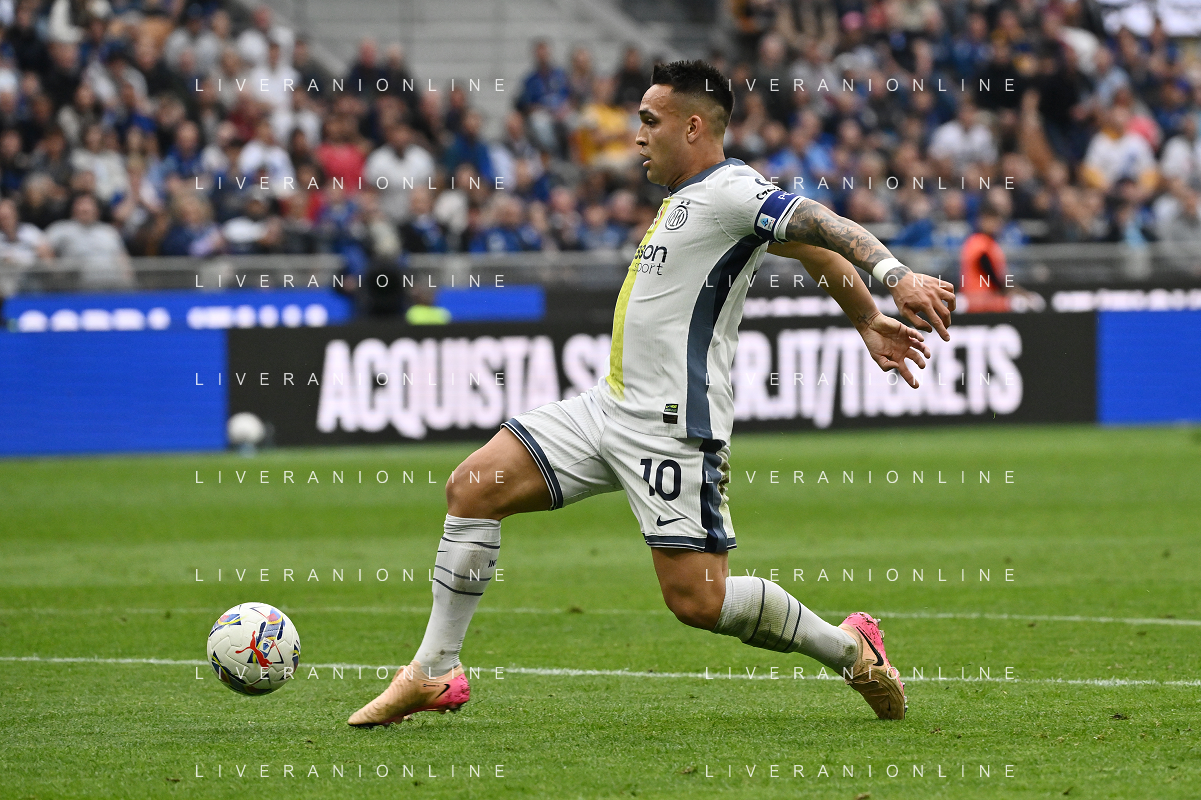 Inter vs Cagliari nella foto Lautaro Martinez (Inter) appoggia male la caviglia dewstra durante un'azione personale Milano 12-04-2025 Stadio Giuseppe Meazza - San Siro Campionato Serie A Enilive - 32a giornata foto Roberto Garavaglia/Agenzia Aldo Liverani sas