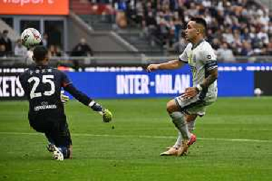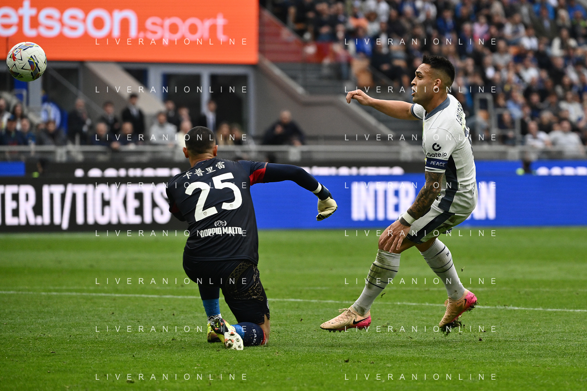 Inter vs Cagliari nella foto Lautaro Martinez (Inter) segna il gol del 2 a 0 Milano 12-04-2025 Stadio Giuseppe Meazza - San Siro Campionato Serie A Enilive - 32a giornata foto Roberto Garavaglia/Agenzia Aldo Liverani sas