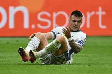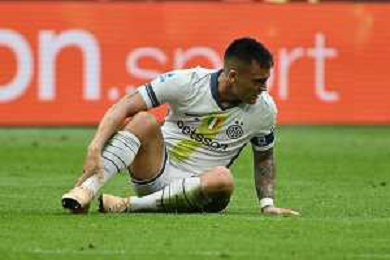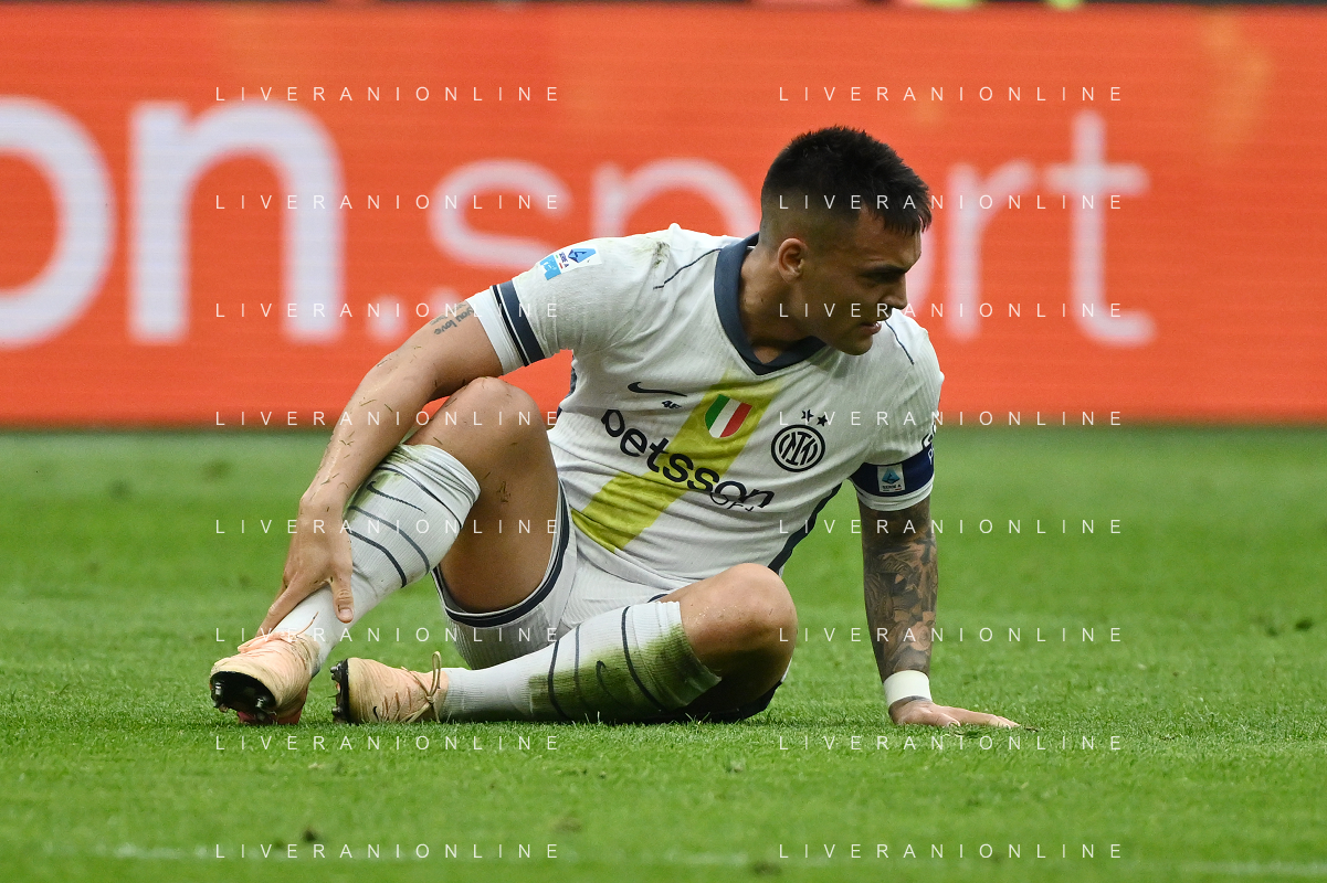 Inter vs Cagliari nella foto Lautaro Martinez (Inter) dolorante alla caviglia appoggiata male poco prima Milano 12-04-2025 Stadio Giuseppe Meazza - San Siro Campionato Serie A Enilive - 32a giornata foto Roberto Garavaglia/Agenzia Aldo Liverani sas
