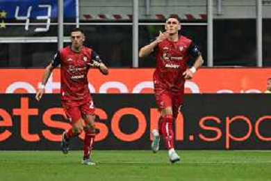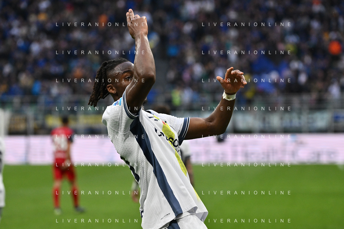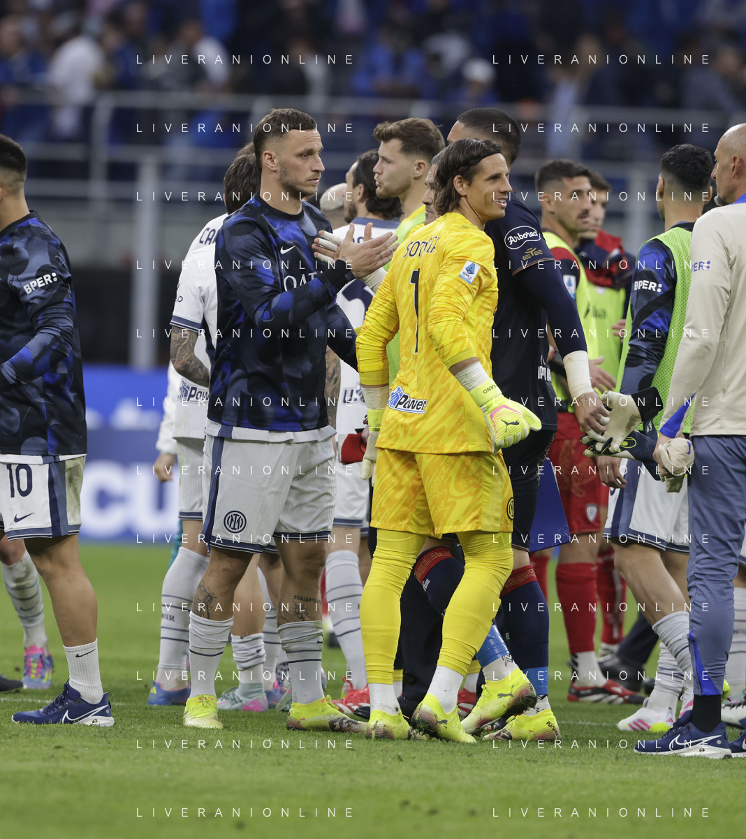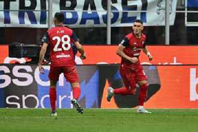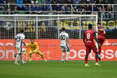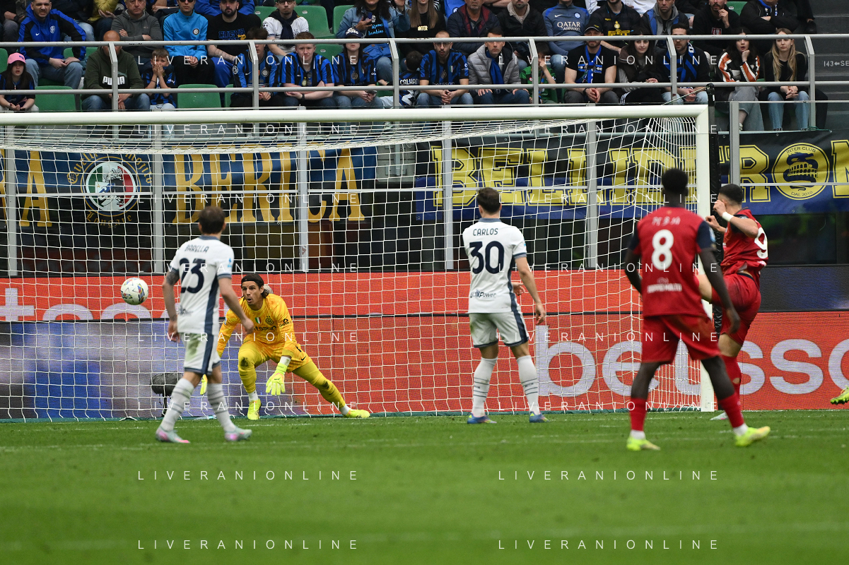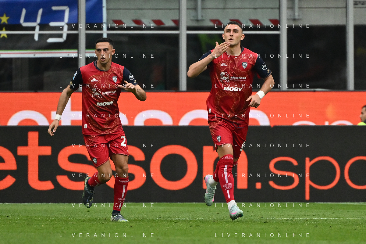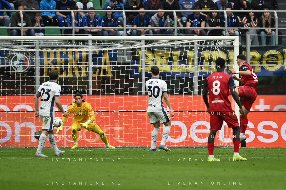 Inter vs Cagliari nella foto Roberto Piccoli (Cagliari) a DX segna il gol dell'1 a 2 Milano 12-04-2025 Stadio Giuseppe Meazza - San Siro Campionato Serie A Enilive - 32a giornata foto Roberto Garavaglia/Agenzia Aldo Liverani sas
