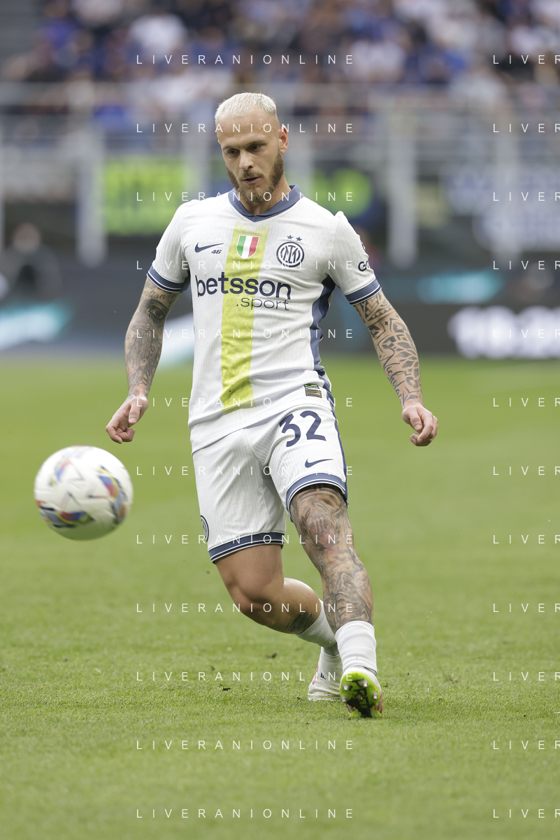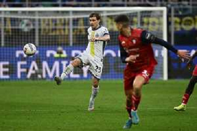 Inter vs Cagliari nella foto Federico Dimarco (Inter) occasione da gol Milano 12-04-2025 Stadio Giuseppe Meazza - San Siro Campionato Serie A Enilive - 32a giornata foto Roberto Garavaglia/Agenzia Aldo Liverani sas