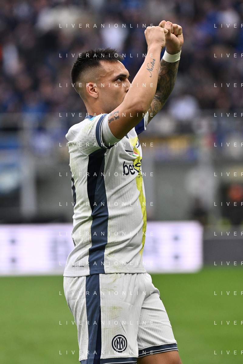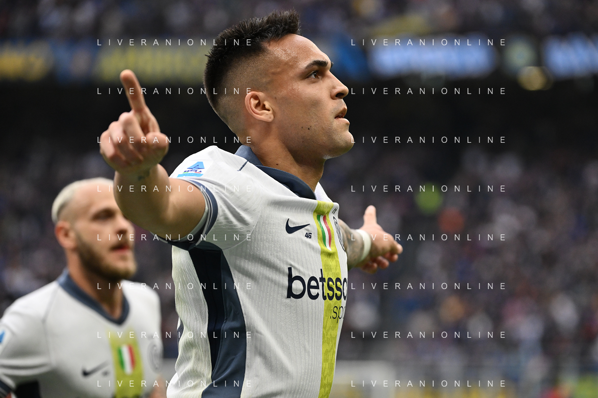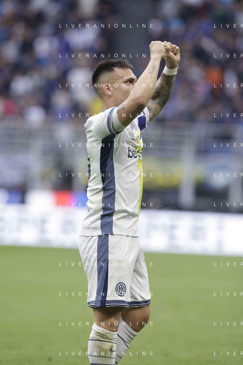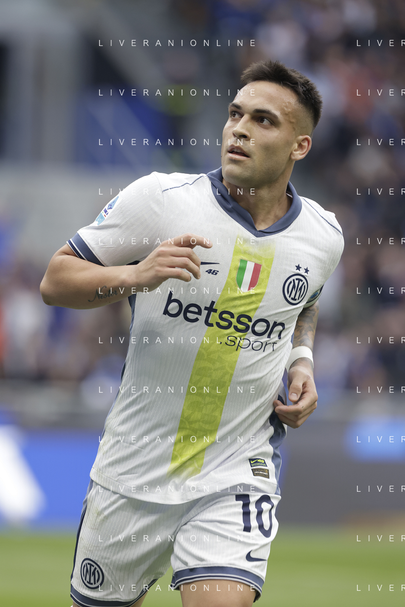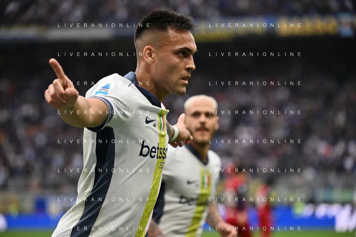 Inter vs Cagliari nella foto Lautaro Martinez (Inter) esultanza dopo il gol del 2 a 0 Milano 12-04-2025 Stadio Giuseppe Meazza - San Siro Campionato Serie A Enilive - 32a giornata foto Roberto Garavaglia/Agenzia Aldo Liverani sas