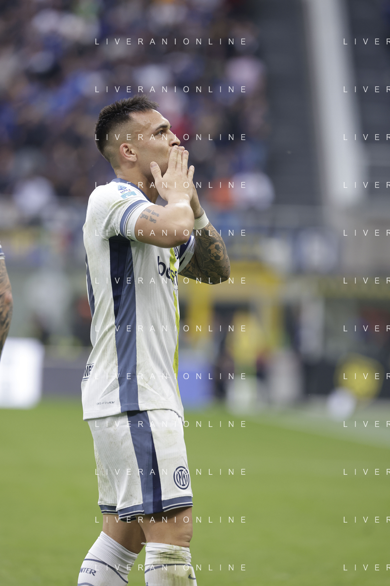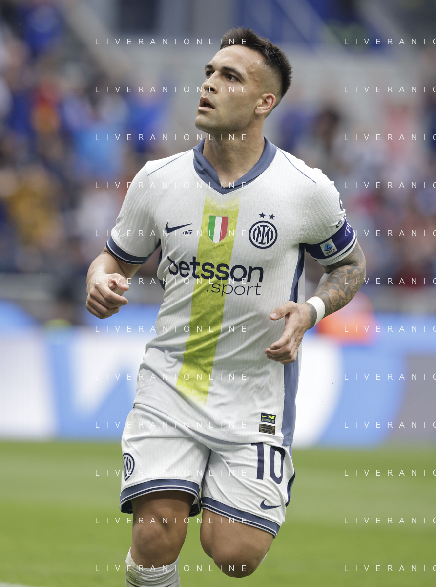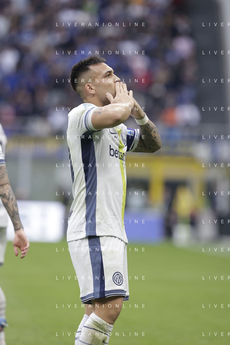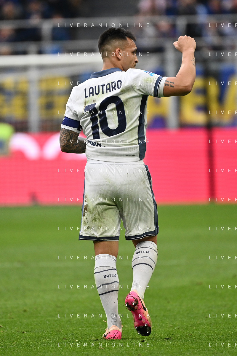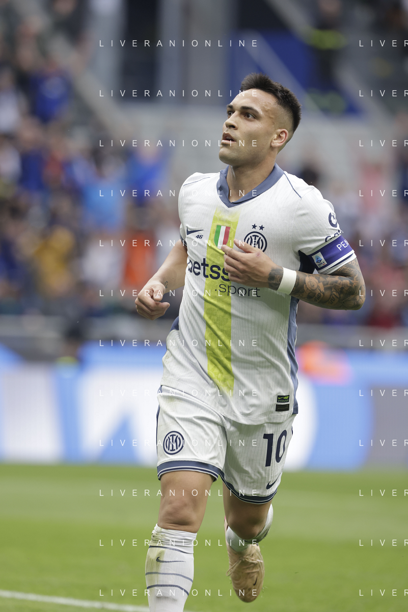 Inter vs Cagliari nella foto Lautaro Martinez (Inter) esultanza dopo il gol del 2 a 0 Milano 12-04-2025 Stadio Giuseppe Meazza - San Siro Campionato Serie A Enilive - 32a giornata foto Roberto Garavaglia/Agenzia Aldo Liverani sas