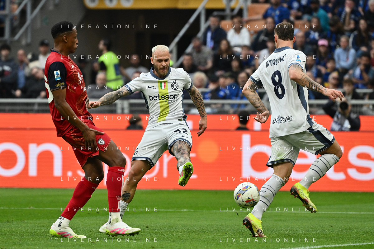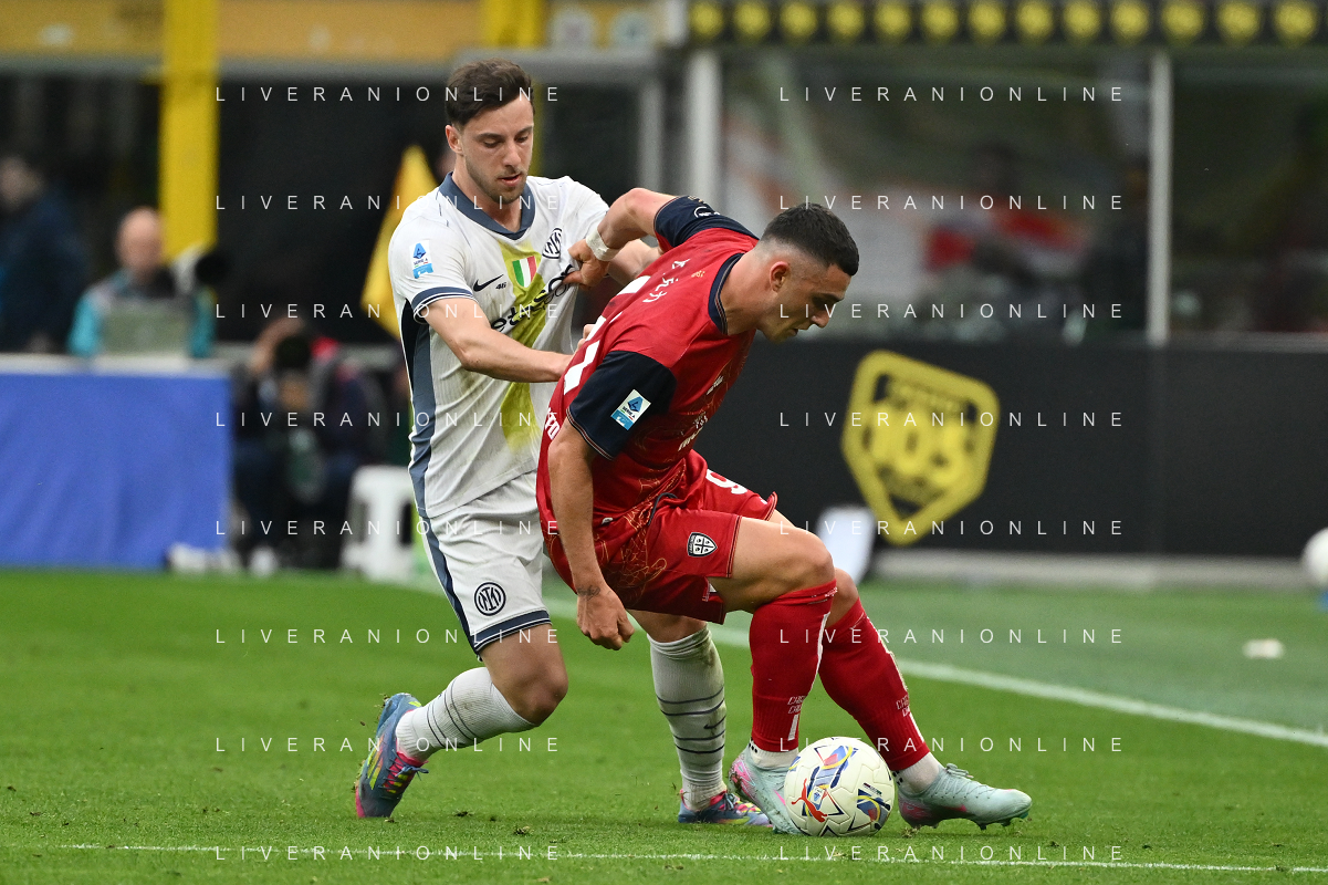 Inter vs Cagliari nella foto Davide Frattesi (Inter) e Adam Obert (Cagliari) Milano 12-04-2025 Stadio Giuseppe Meazza - San Siro Campionato Serie A Enilive - 32a giornata foto Roberto Garavaglia/Agenzia Aldo Liverani sas