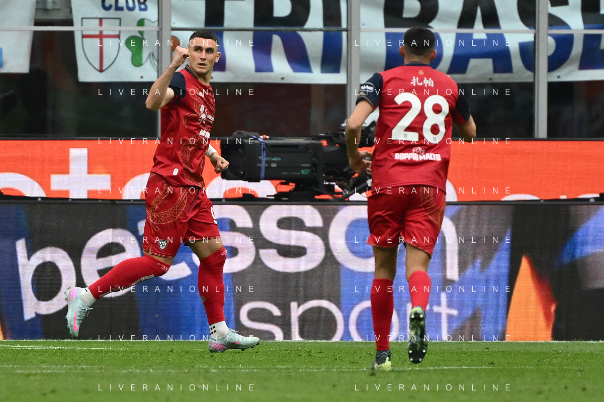Inter vs Cagliari nella foto Roberto Piccoli (Cagliari) esultanza dopo il gol dell'1 a 2 Milano 12-04-2025 Stadio Giuseppe Meazza - San Siro Campionato Serie A Enilive - 32a giornata foto Roberto Garavaglia/Agenzia Aldo Liverani sas